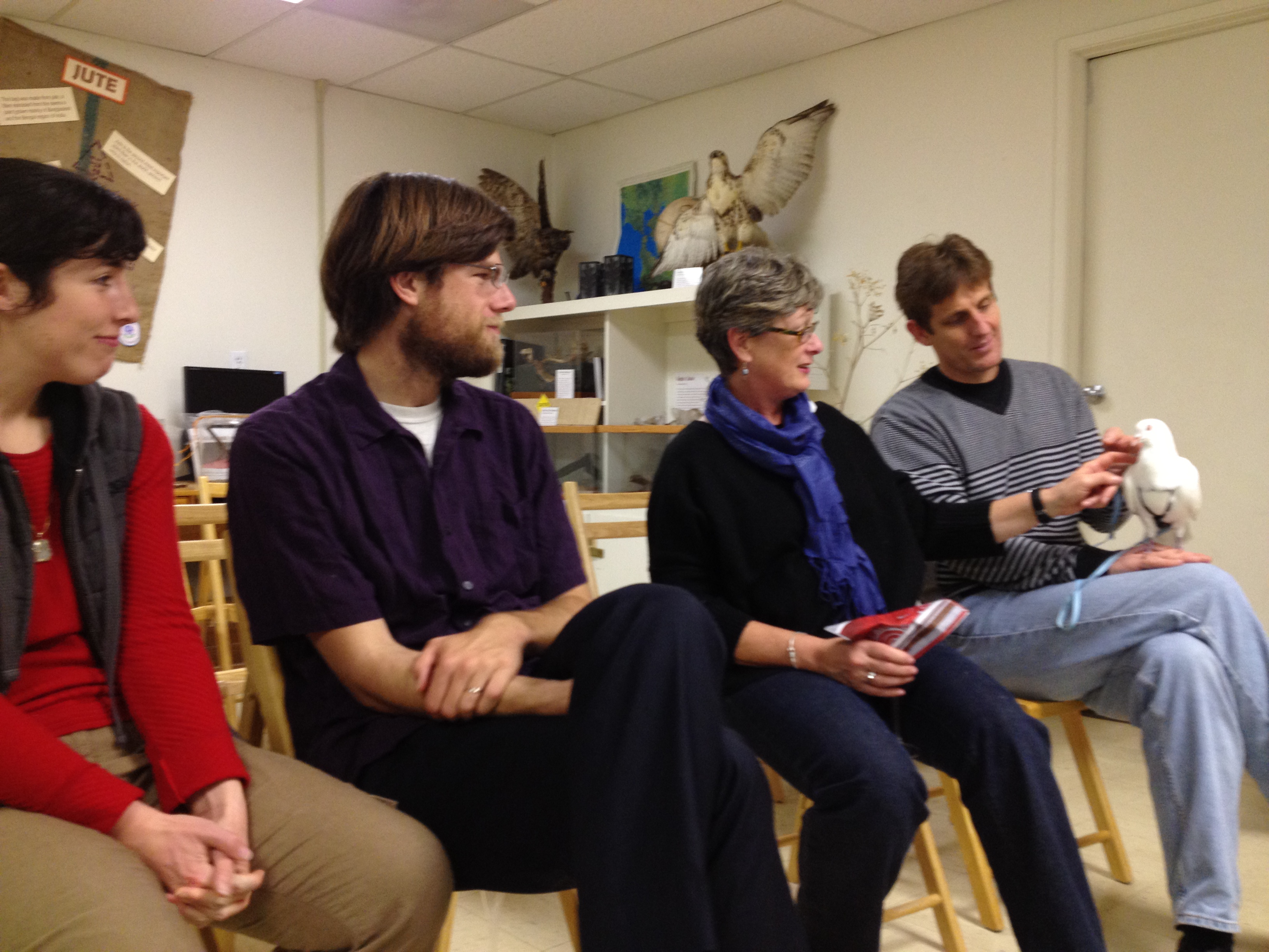 - Snow meets new neighbors- dove Lily, pigeons Pearl & Leo