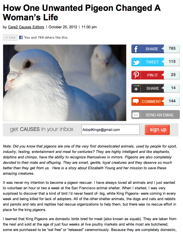 - We mobilize social media to help pigeons & doves