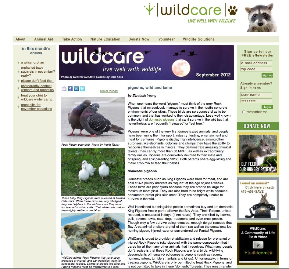 - We launched our own website: PigeonRescue.org