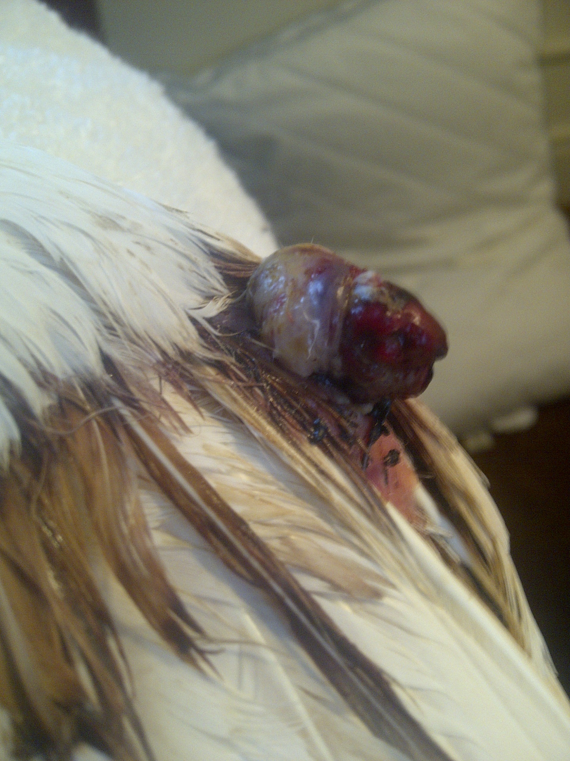 - Chanel developed what seemed to be a feather cyst and was taken to the vet for treatment.