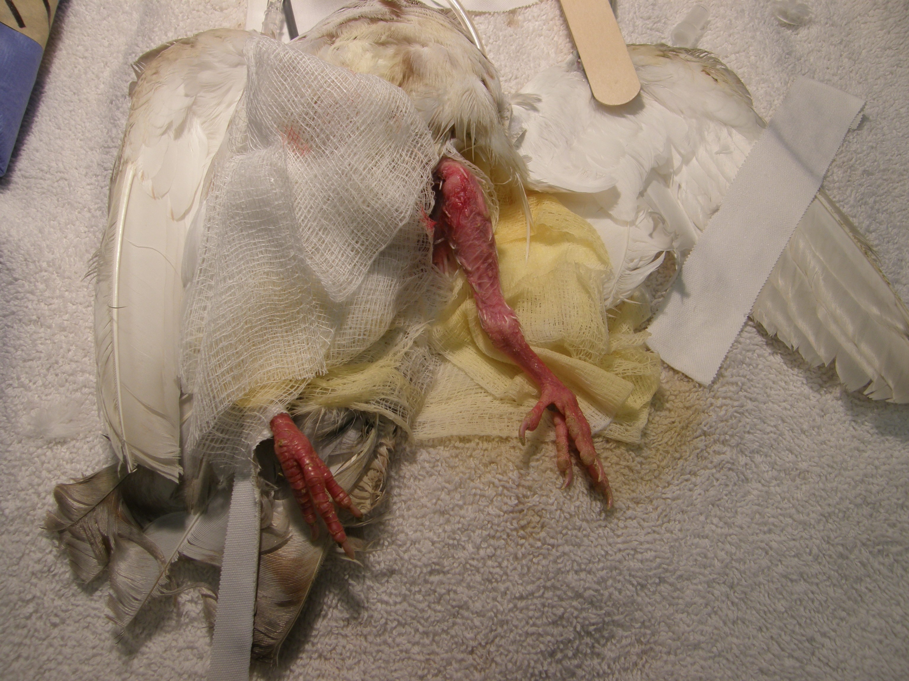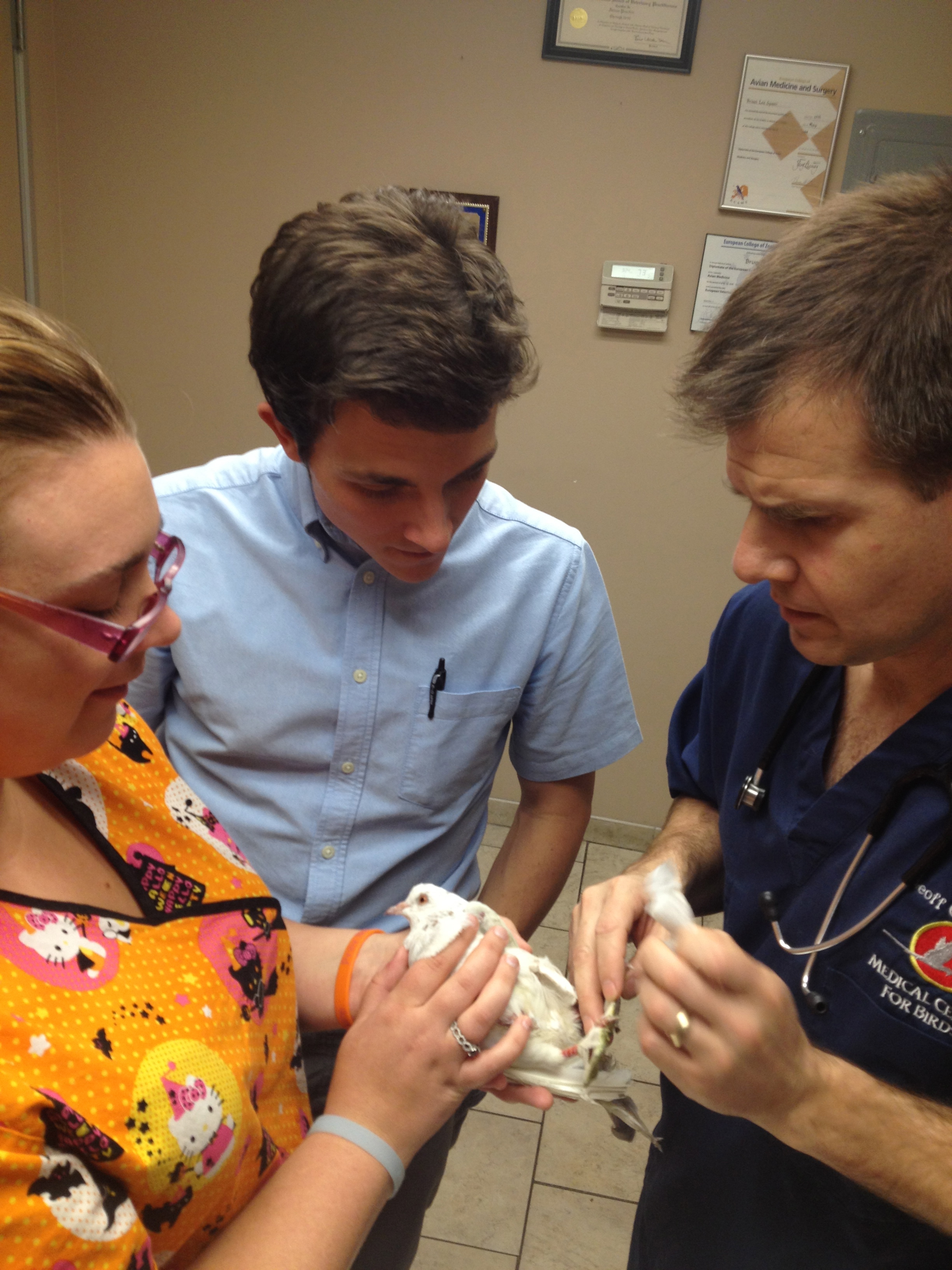 - Medical Center for Birds’ Melody, Drs. Kane & Olsen redoing the splint.