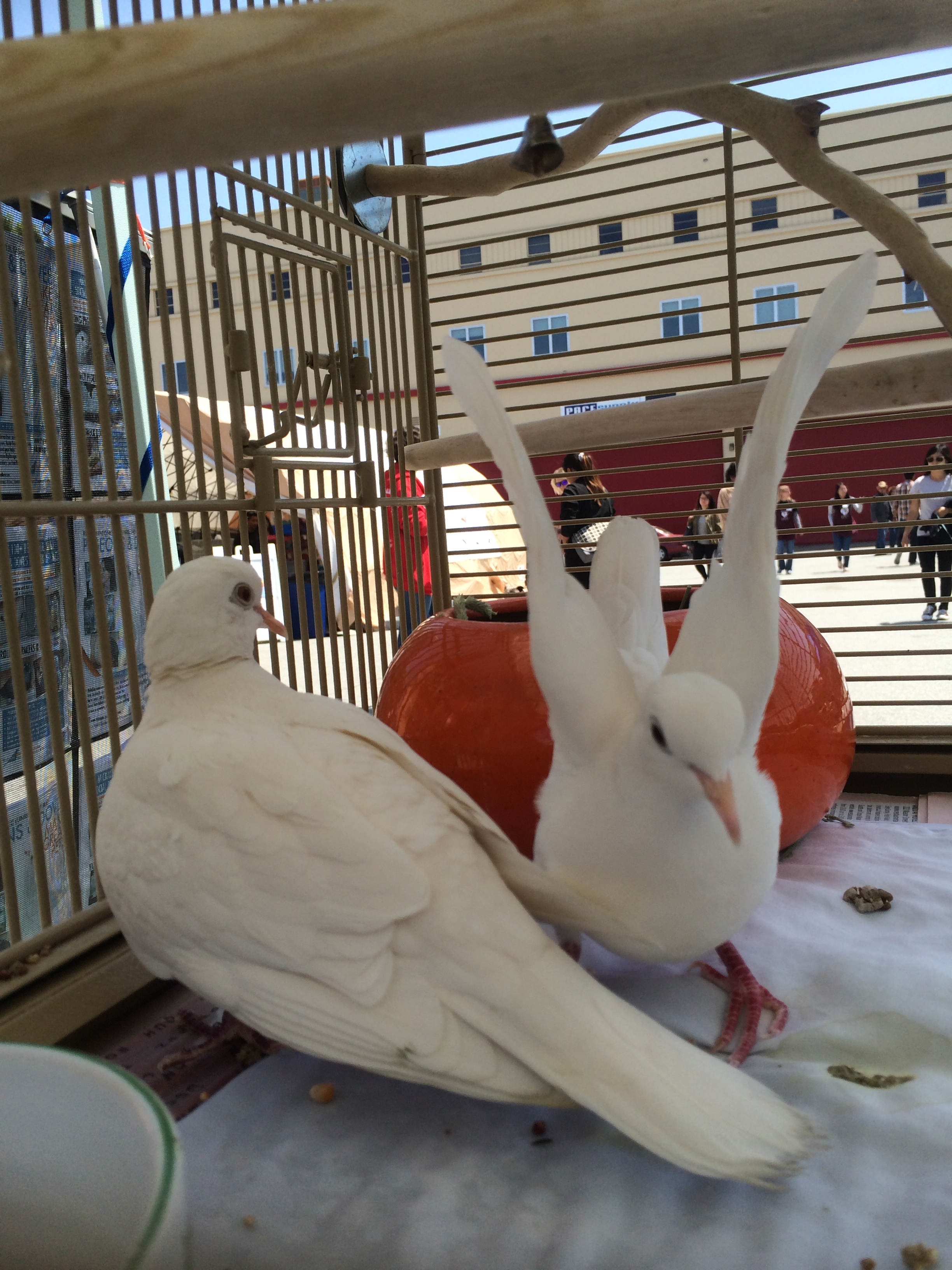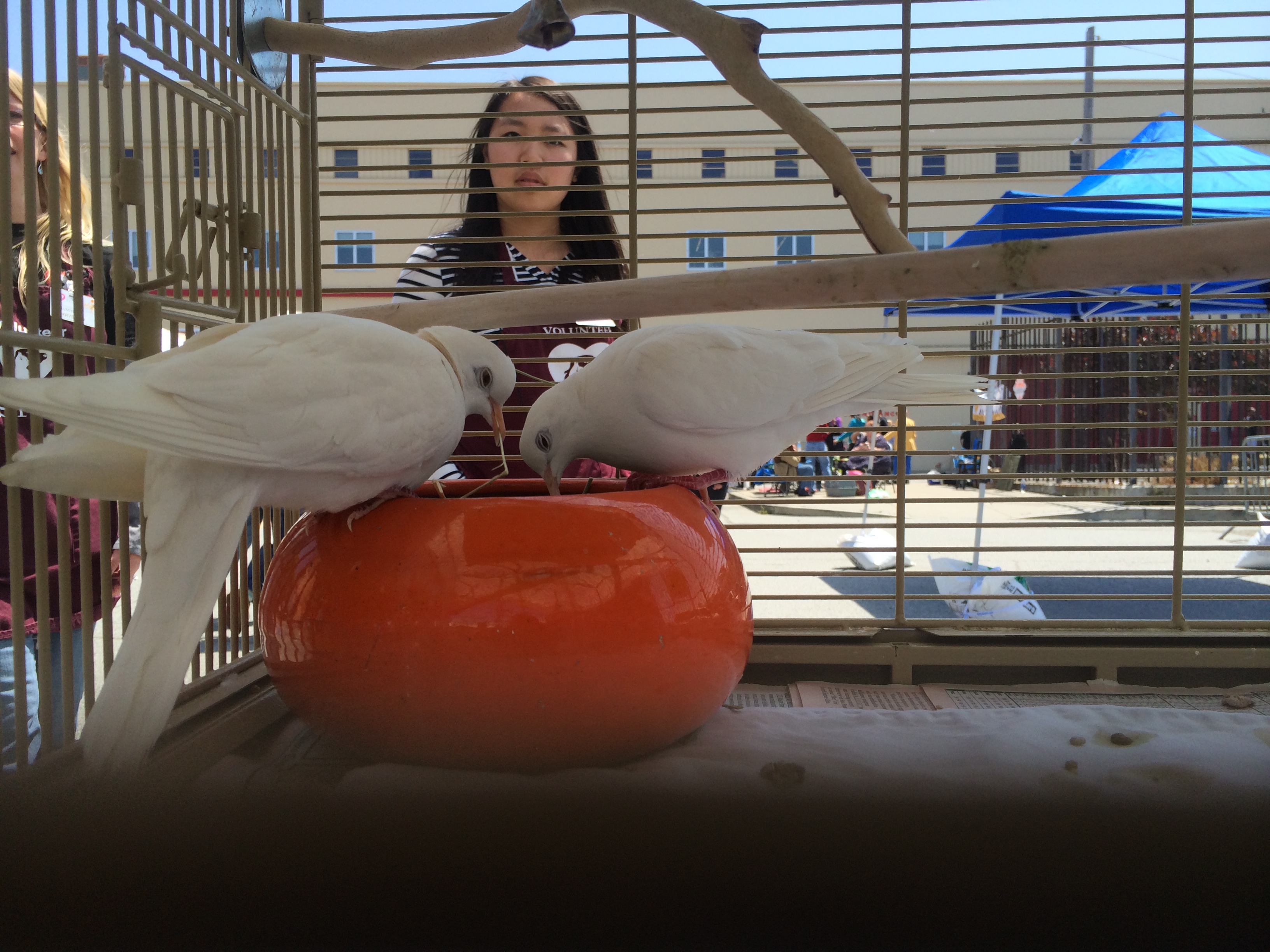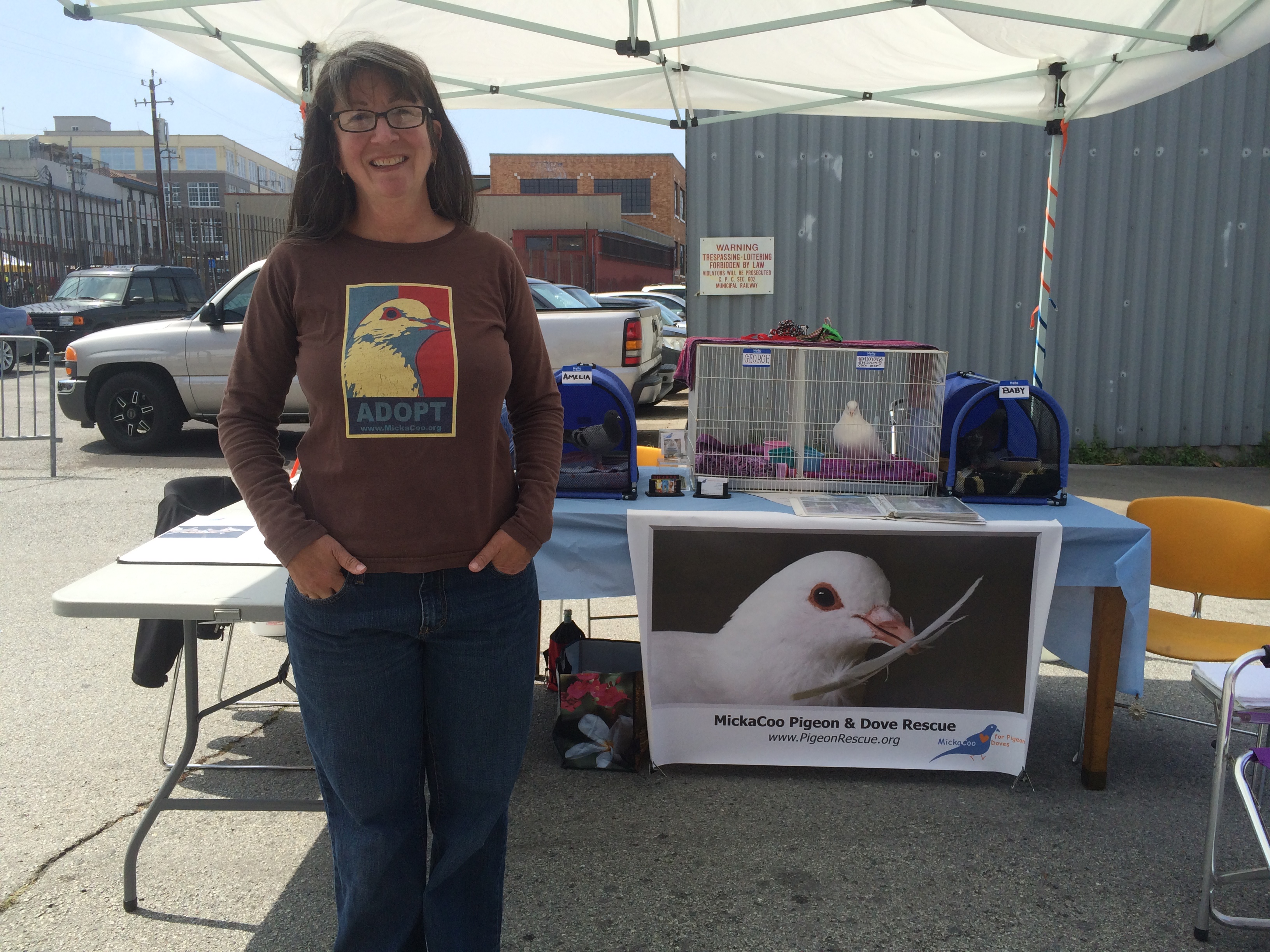 MickaCoo volunteers & birds participating in the Maddie’s Fund Adoptathon in SF helped to educate a lot of folks that birds need rescue too, that pigeons are awesome and that unreleasable pigeons and doves make great pets. Click on photos to enlarge.