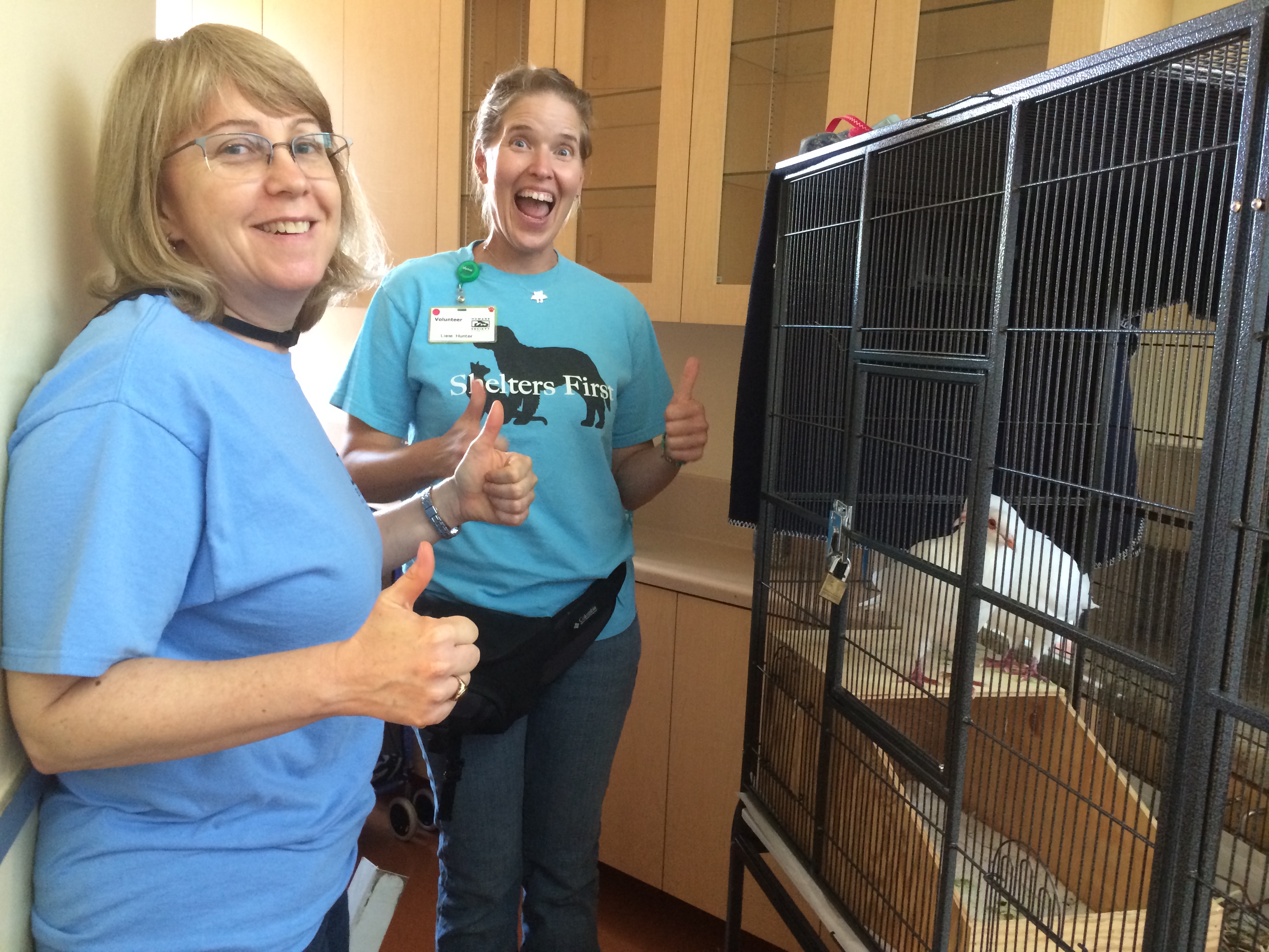 - HSSV staff Beth & Airin helping give Valiant some out-of-cage time