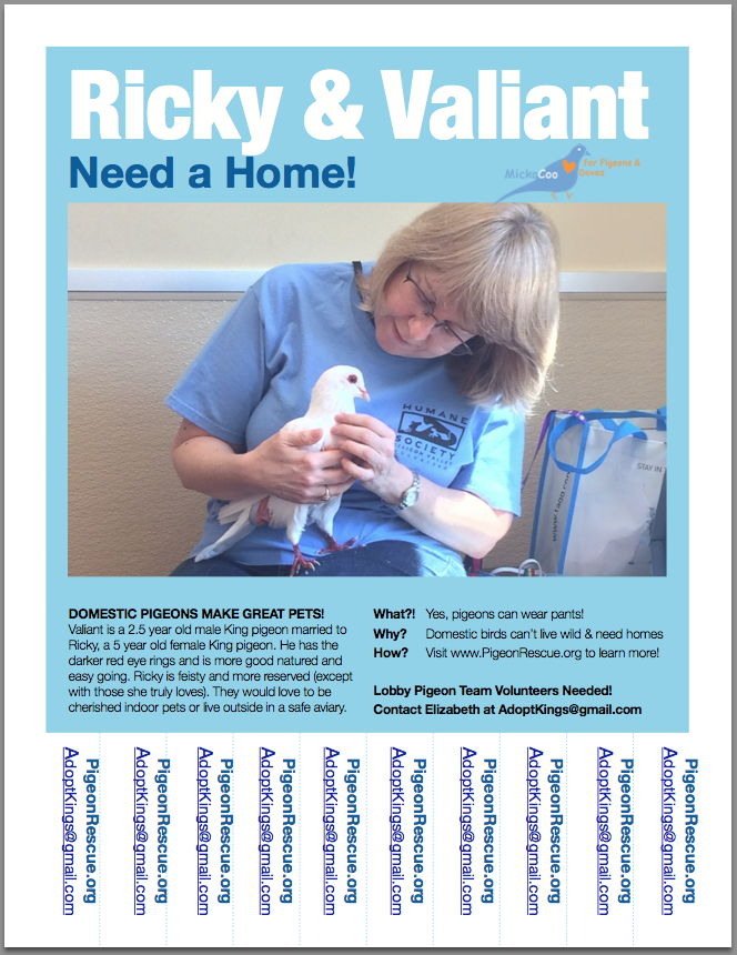 - Ta Da! On 9/8, MickaCoo pigeons Ricky & Valiant moved into their new HSSV foster home