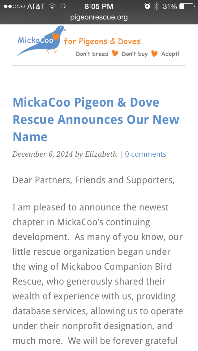 - We joined our big sister parrot rescue Mickaboo for the 7th year
