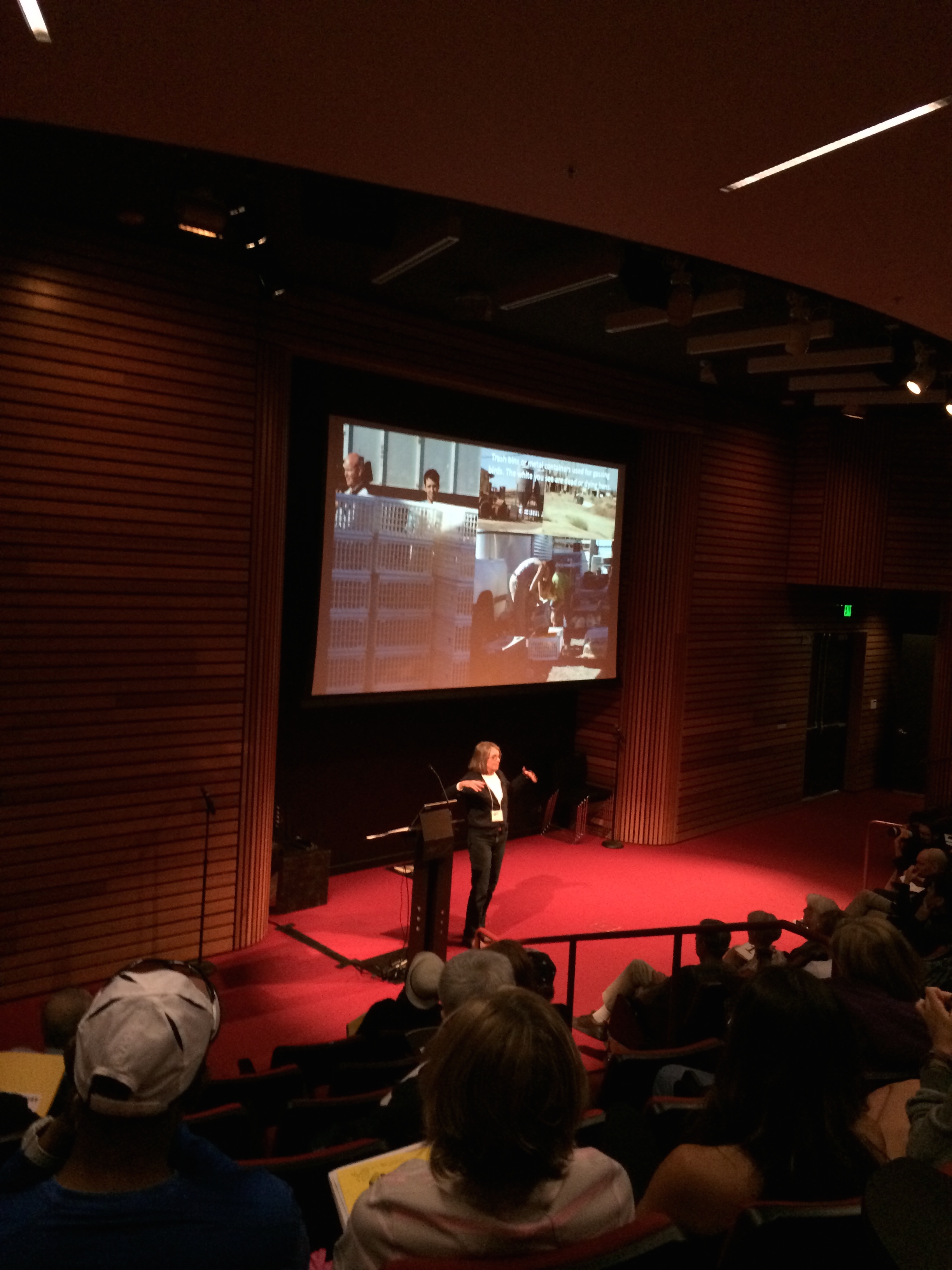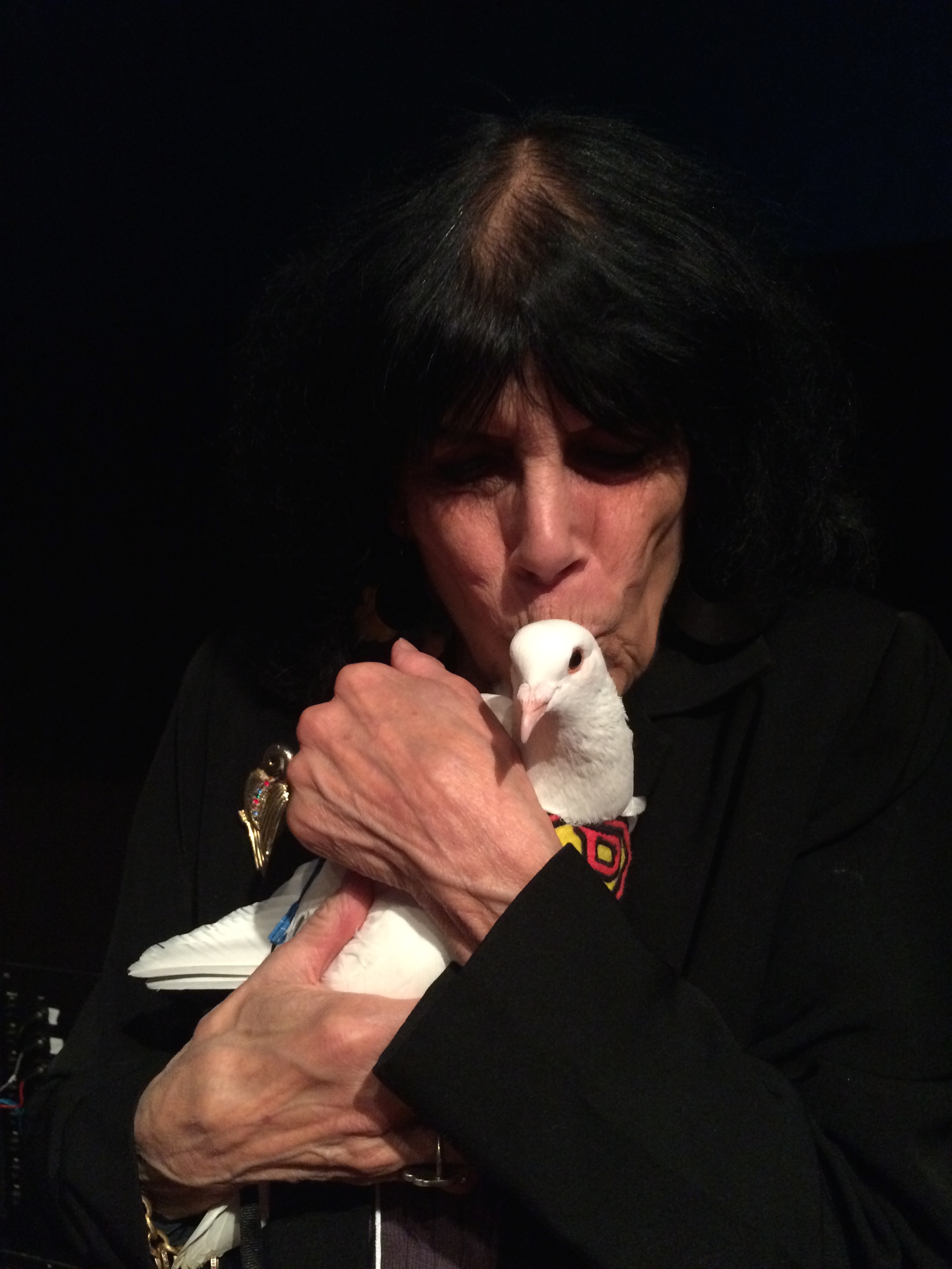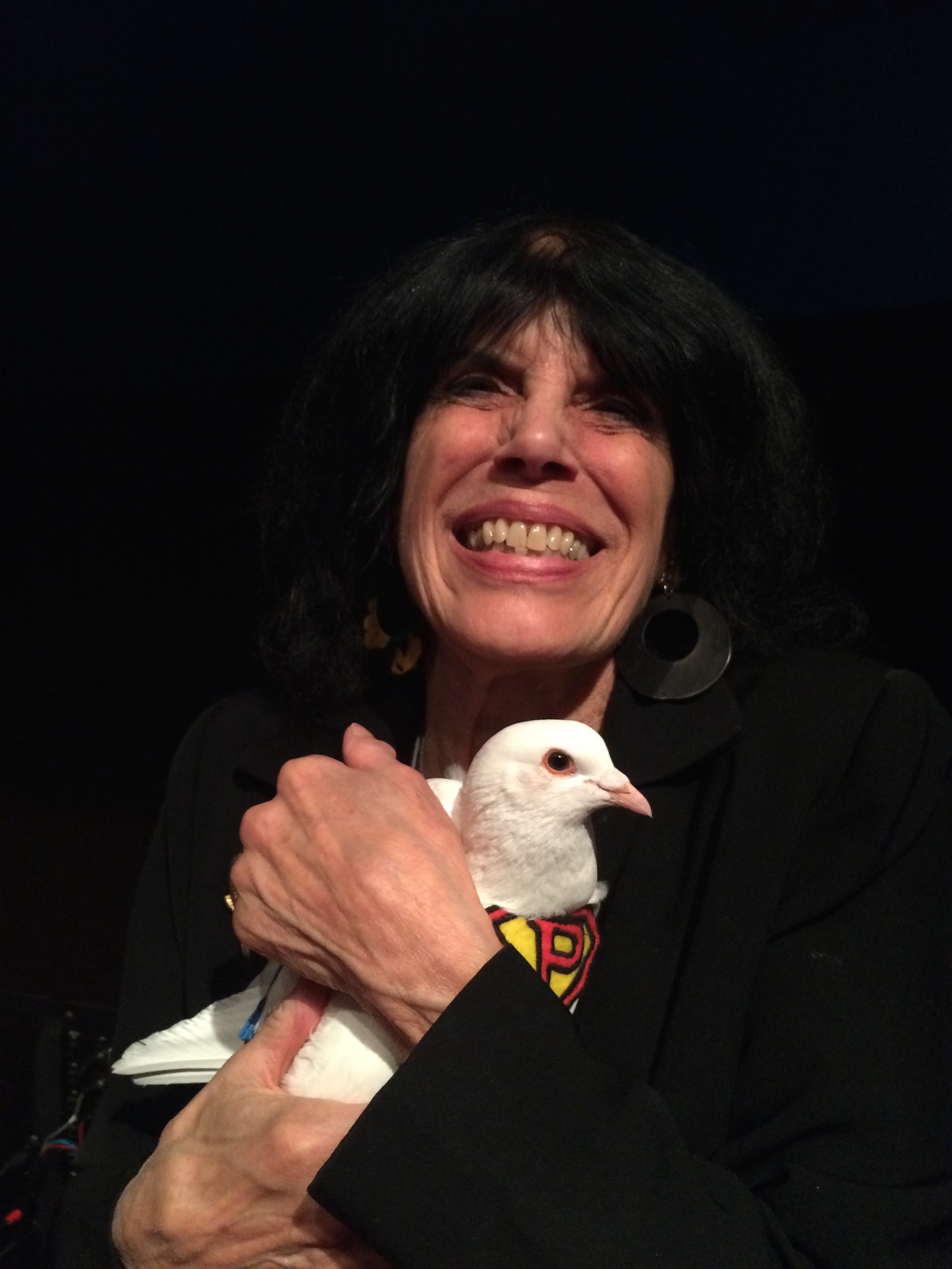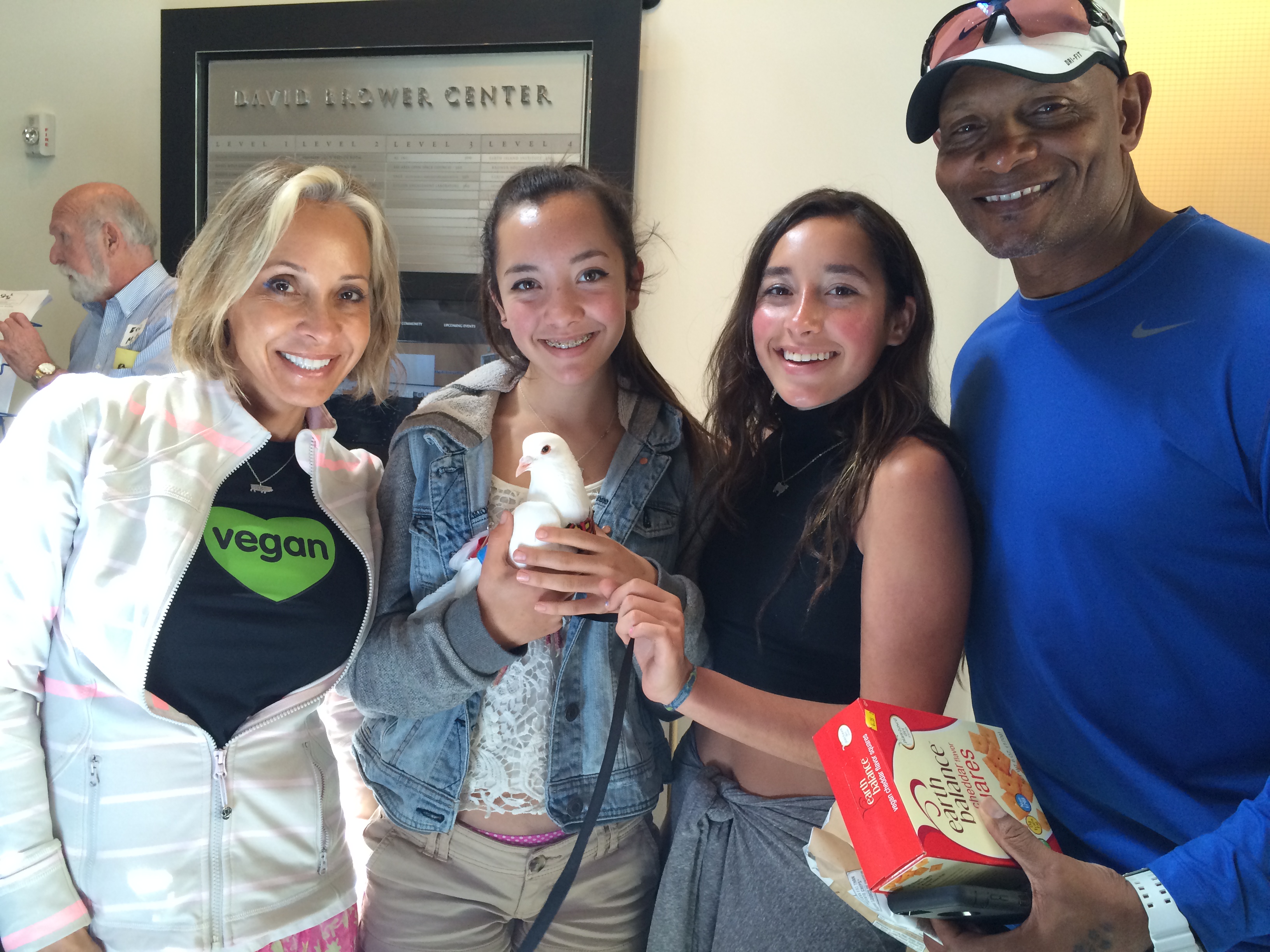 I had an amazing day on Saturday, April 4th, 2015. Pat, a rescued King pigeon (bred for meat- squab), and I attended the fourth annual Conscious Eating Conference put on by United Poultry Concerns & Animal Place. We learned so much! T.J. Tumasse of Animal Legal Defense Fund presented on what investigators find happening to farmed animals and if only a few moments of what he showed was common knowledge, people would look at their food very differently. (Farmed animals need their own Blackfish-type film to awaken consumers.) Mary Finelli of Fish Feel gave a mind-blowing presentation about the trillions of fish being killed annually- far more and even more wastefully than any other animal. Kim Sturla made the case for why farm sanctuaries have to be educators, providing “classrooms without walls”. Karen Davis who, 25 years ago did what everybody said couldn’t be done and created United Poultry Concerns, spoke eloquently on the role of single issue campaigns. When Karen wanted to start UPC, she was told that if people couldn’t even be inspired to care about whales, they could never care about chickens but she has proved them wrong. Victoria Moran, author of Main Street Vegan and The Good Karma Diet (among other titles) gave an uplifting call to the abundance of vegan living. It was a great conference and we were privileged to be there advocating on behalf of pigeons and learning from animal rights leaders. Click on the photos to see full size.