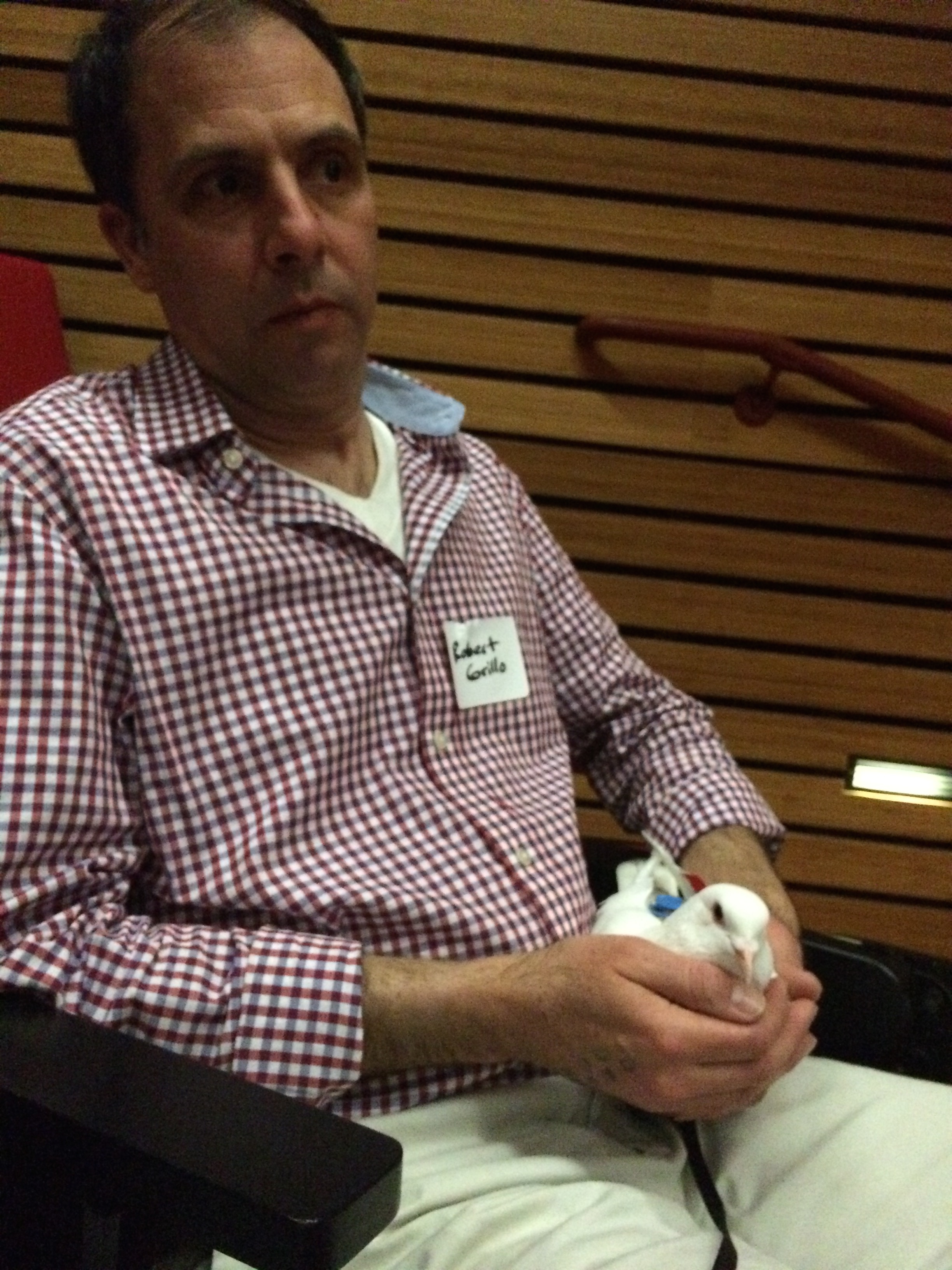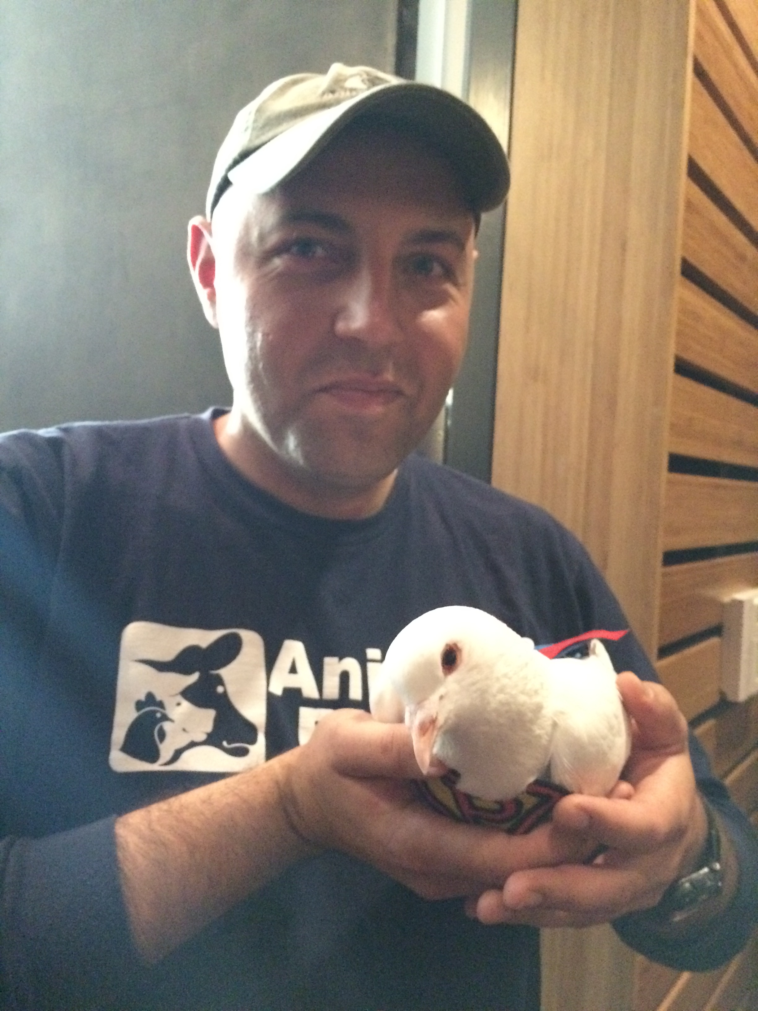 - Robert Grillo, founder of Free from Harm, has a rescued King pigeon