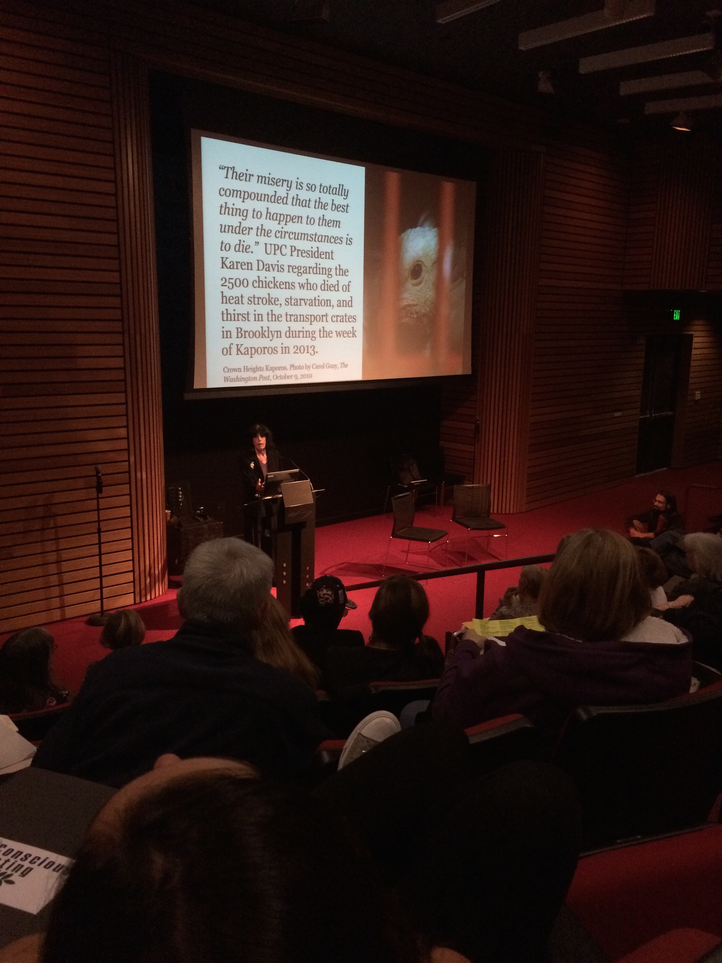 - United Poultry Concerns founder Karen Davis presented on the role of single issue campaigns