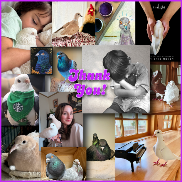 We love our rescued and adopted pigeons and doves every day, 365 days a year. And we love honoring your birds in our Palomacy calendars, shared all over the world! And your support for this special fundraiser helps birds every day.