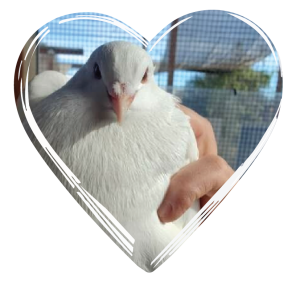 Coco was rescued by a kind woman named Monica, who saw her being attacked by a hawk and came to her rescue. Monica reached out to Palomacy for help and we coached her on the basics of pigeon care and she quickly adopted Coco!