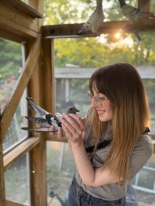 Mali is a born animal lover hailing from Washington DC. She started rescuing pigeons when the Covid pandemic hit and everyone was stuck at home. Once she started, she couldn’t stop and she quickly began rescuing pigeons on her own and adopting several. She now specializes in special needs pigeons thanks to a little tumbler pigeon named Ringo. She continues to foster and rescue now in the Vermont area with Ringo and a few other permanent resident pigeons as well as a revolving door of foster pigeons!