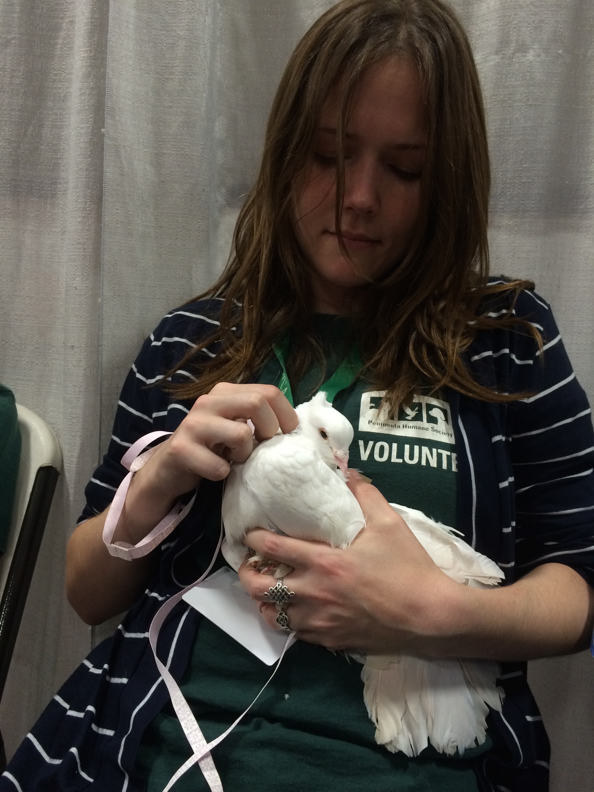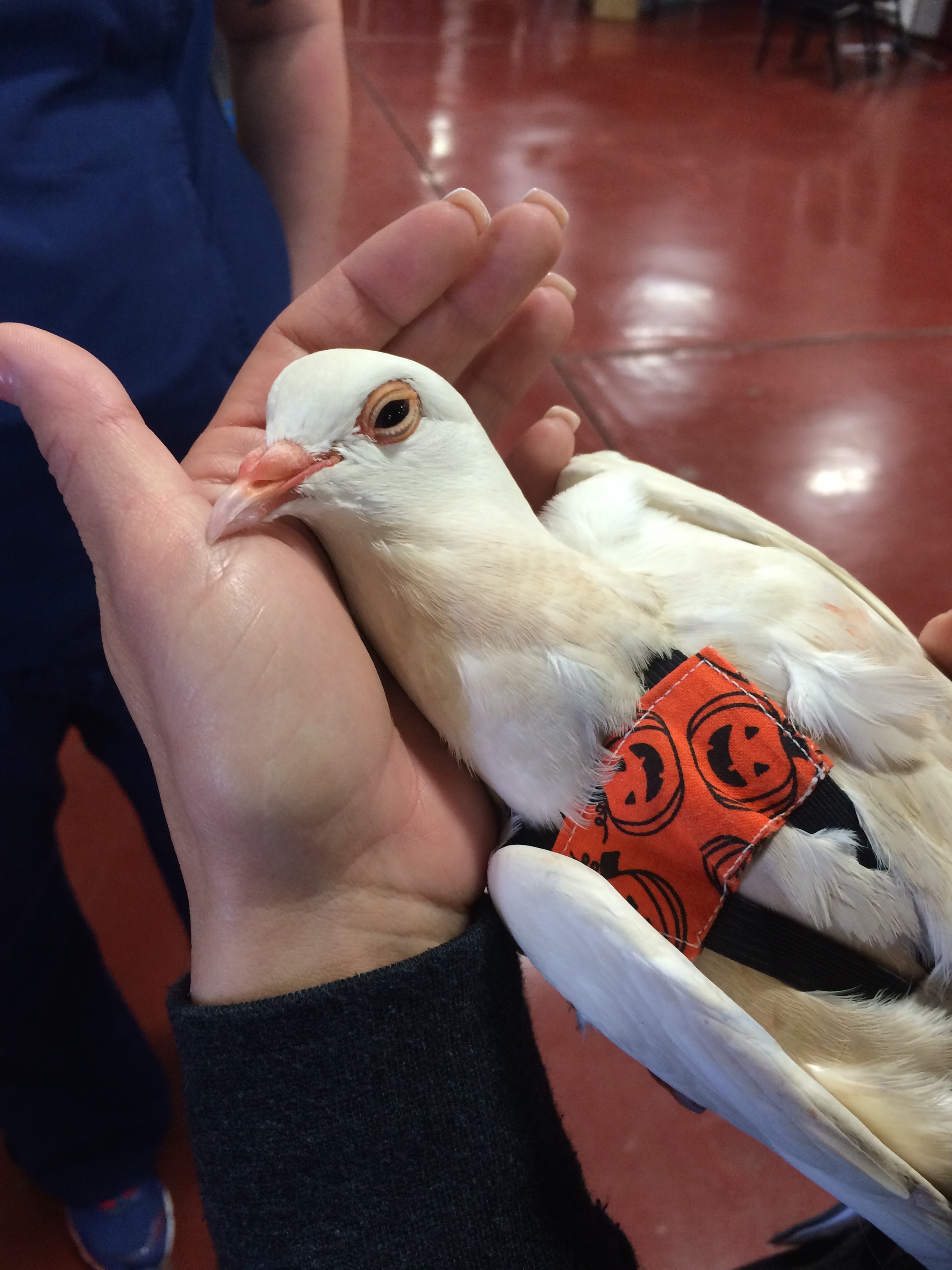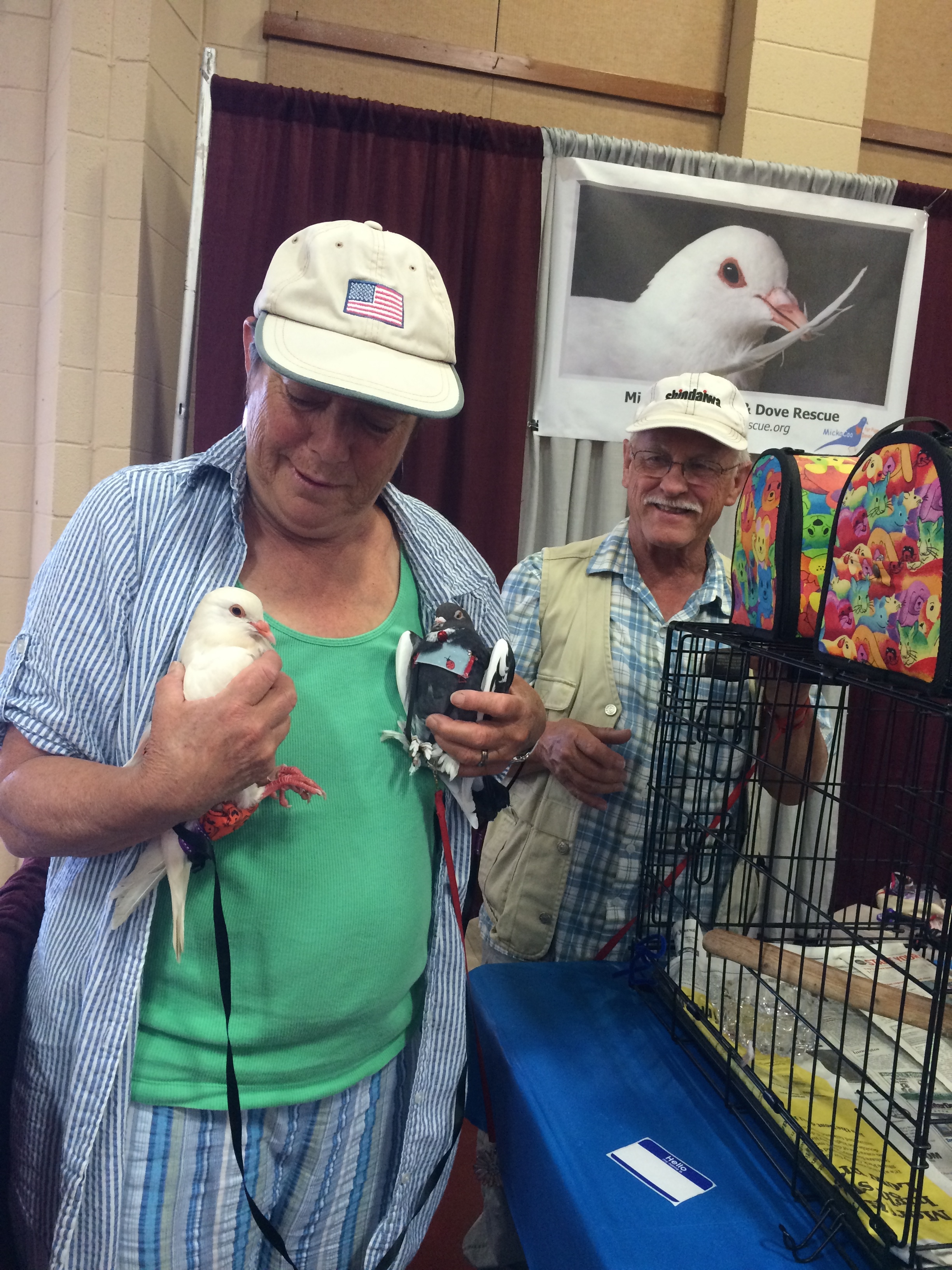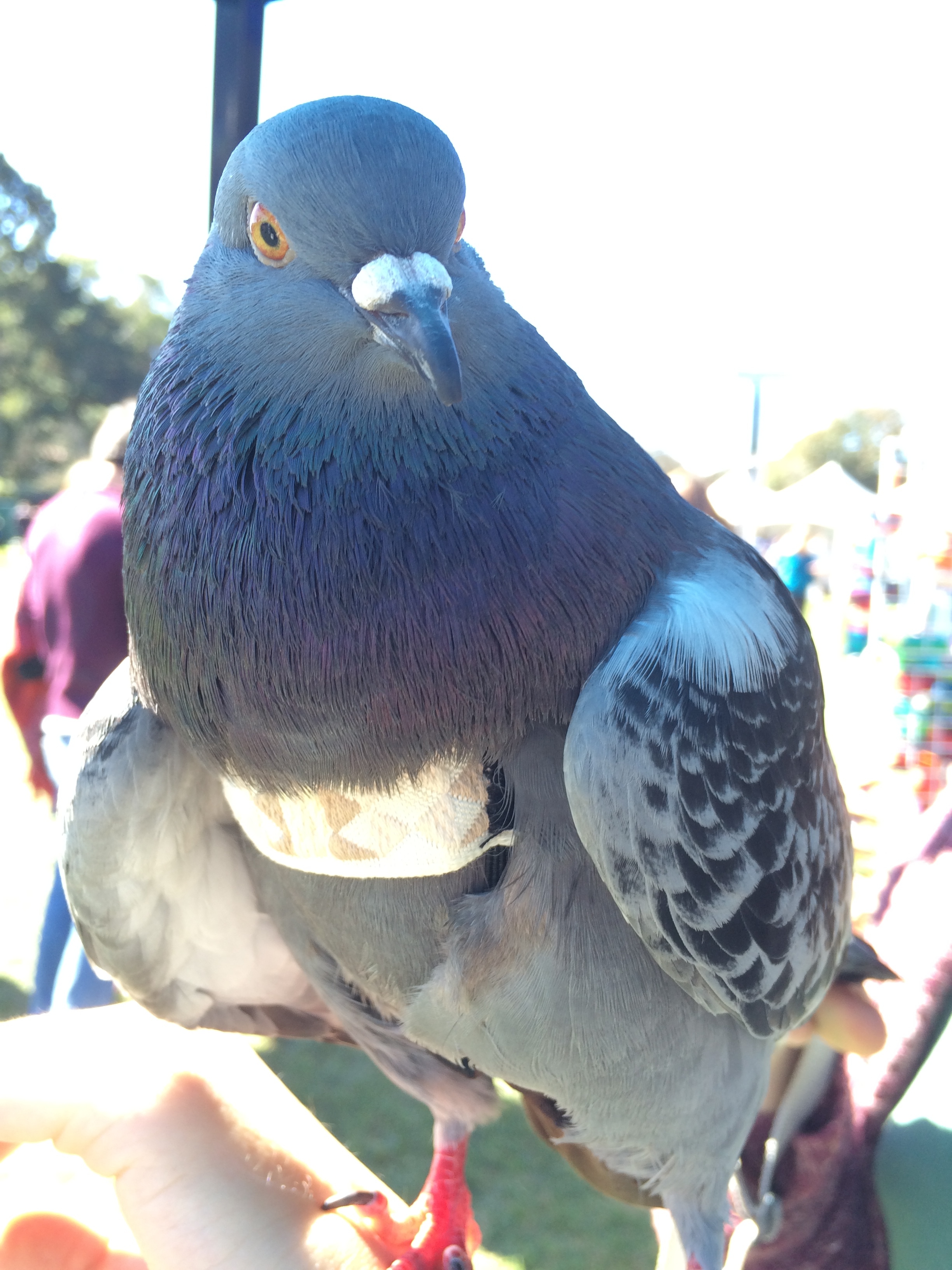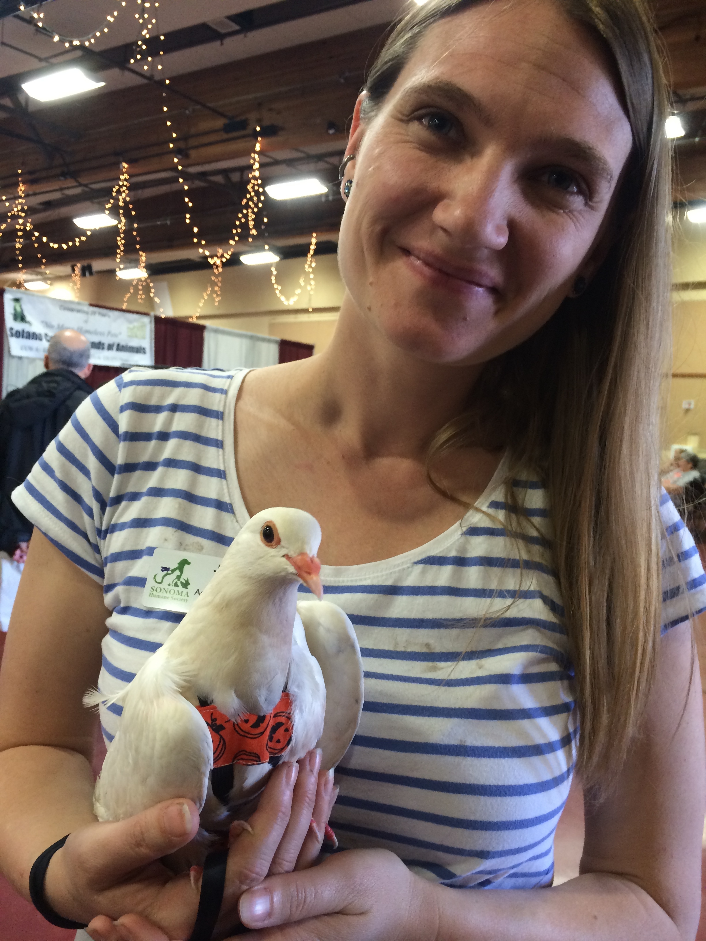 A note from Elizabeth- Every day selectively inbred domestic pigeons like Holly are exposed to the risks of the wild by hobbyists, racers and “dove release” people. They are gambling with the lives of the innocent birds who have no choice in the matter. Holly was very lucky to survive her time on her own. Many birds do not. Thank you to Candy & Rick for saving this one. (Learn more- Never Buy & Release Birds!)