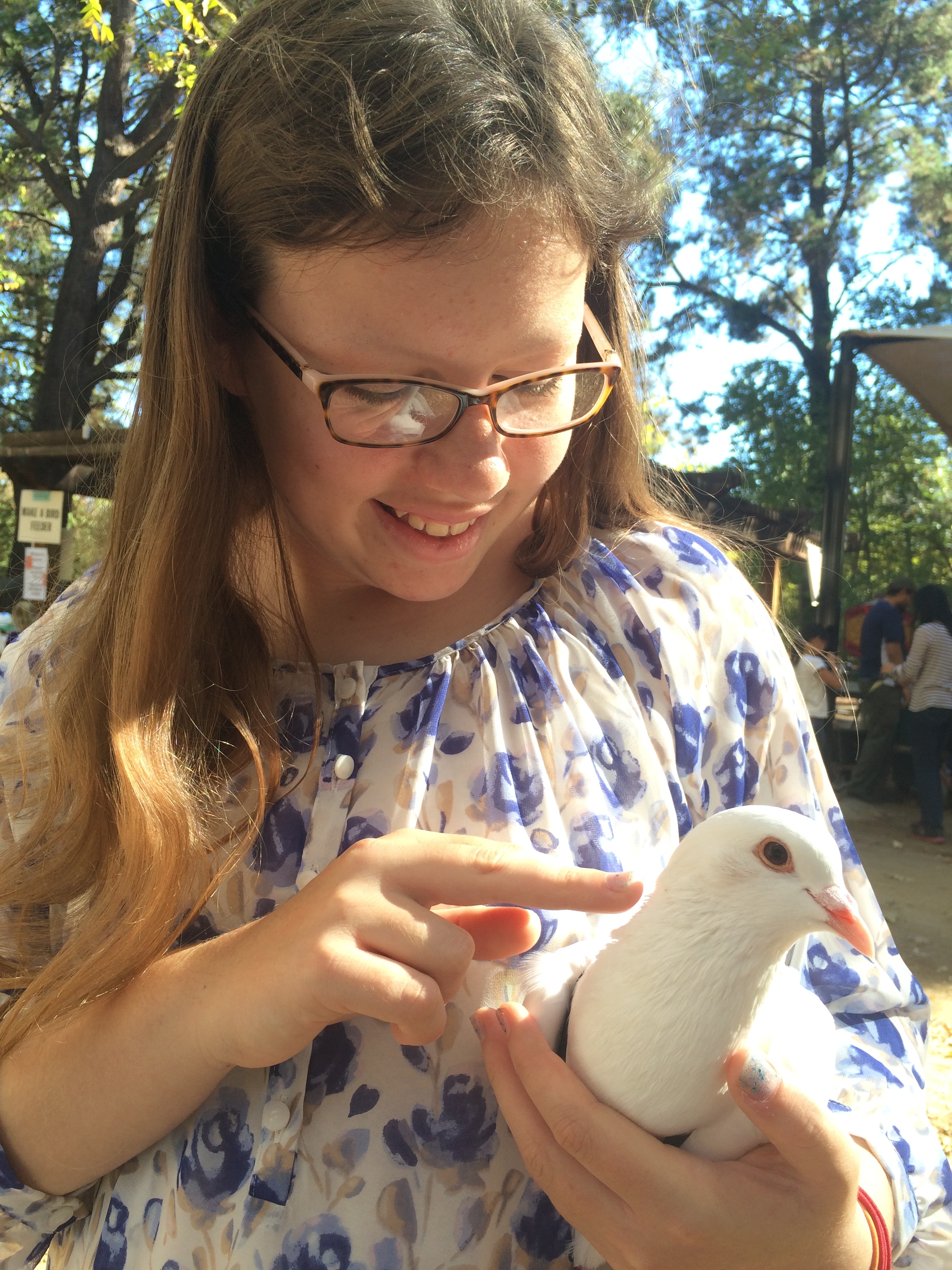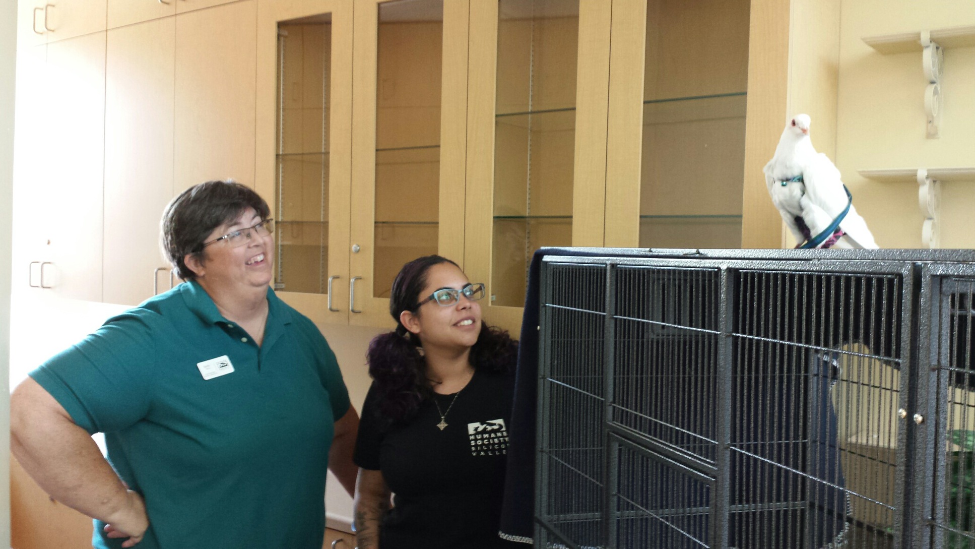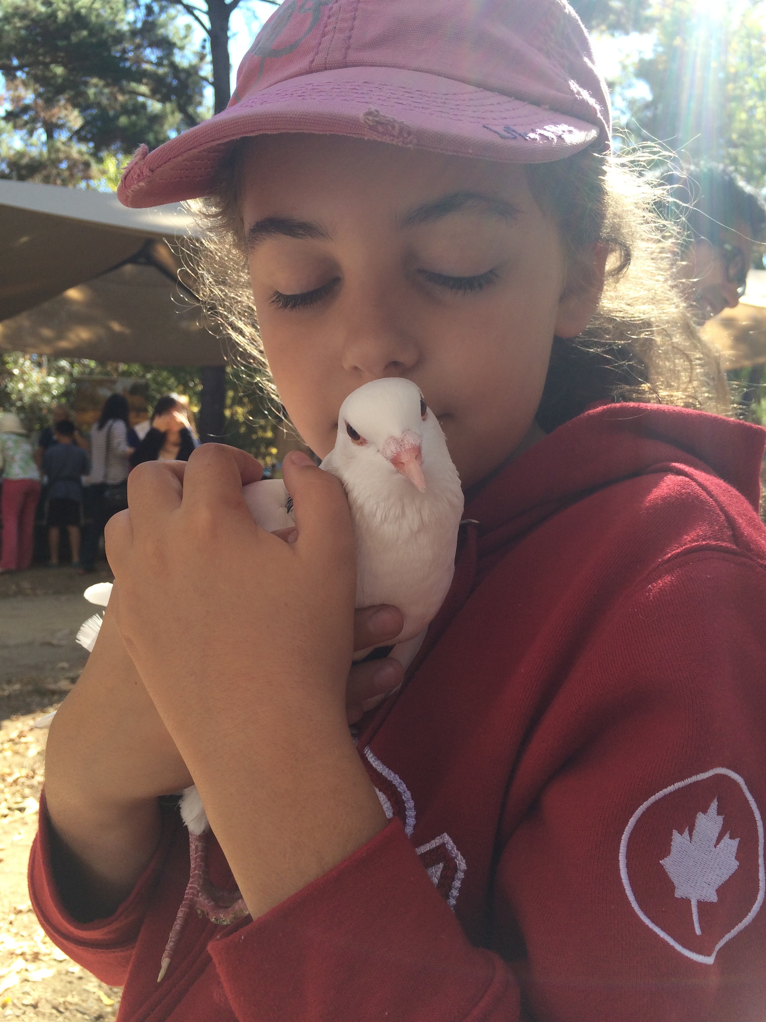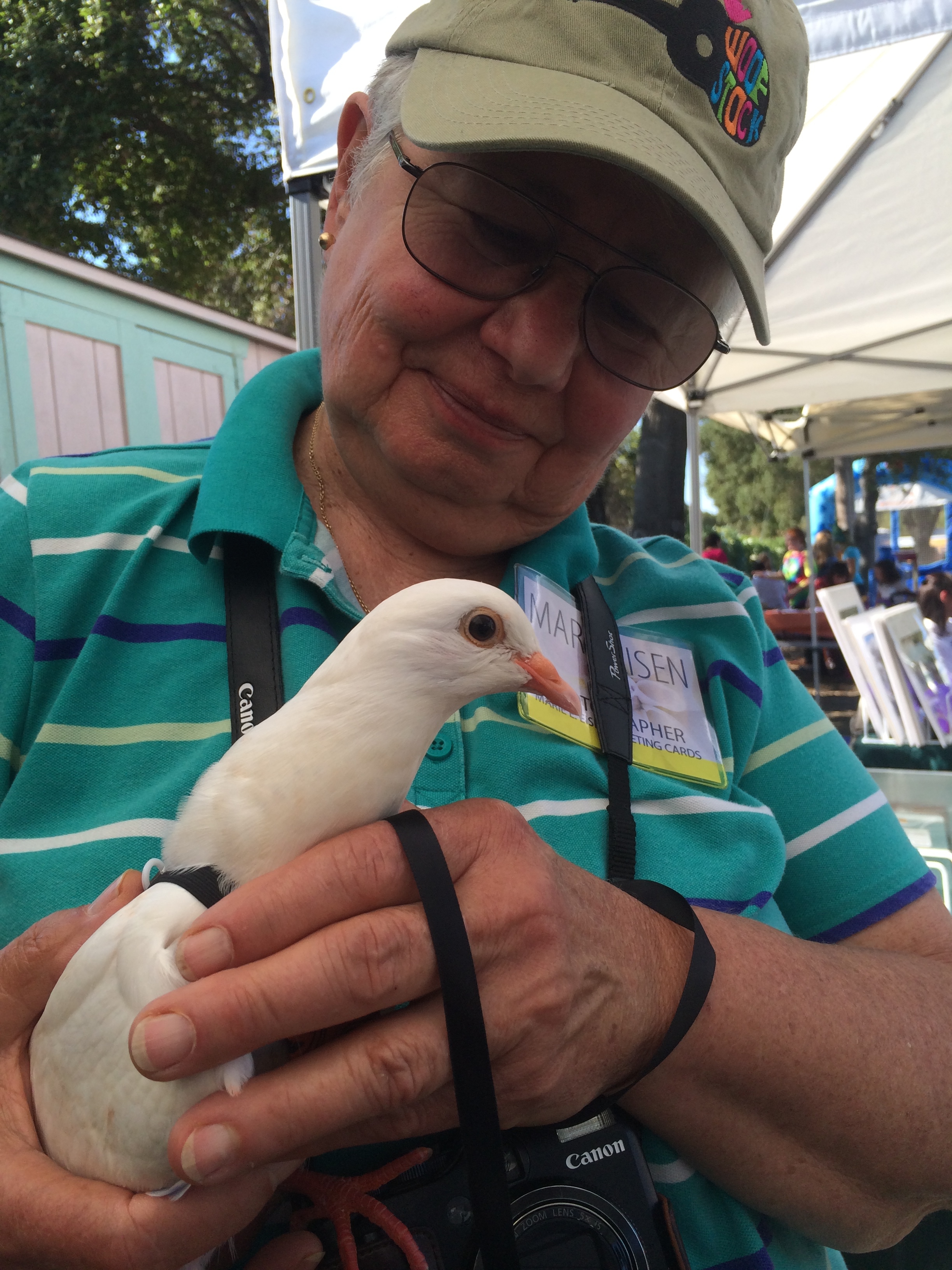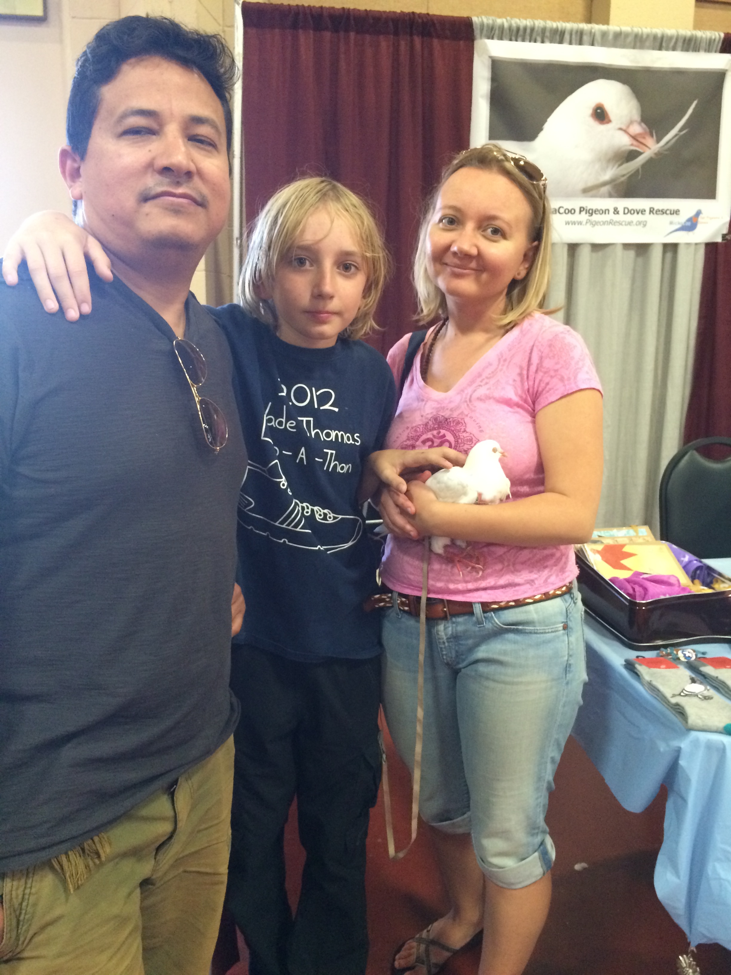 A note from Elizabeth- Every day selectively inbred domestic pigeons like Holly are exposed to the risks of the wild by hobbyists, racers and “dove release” people. They are gambling with the lives of the innocent birds who have no choice in the matter. Holly was very lucky to survive her time on her own. Many birds do not. Thank you to Candy & Rick for saving this one. (Learn more- Never Buy & Release Birds!)
