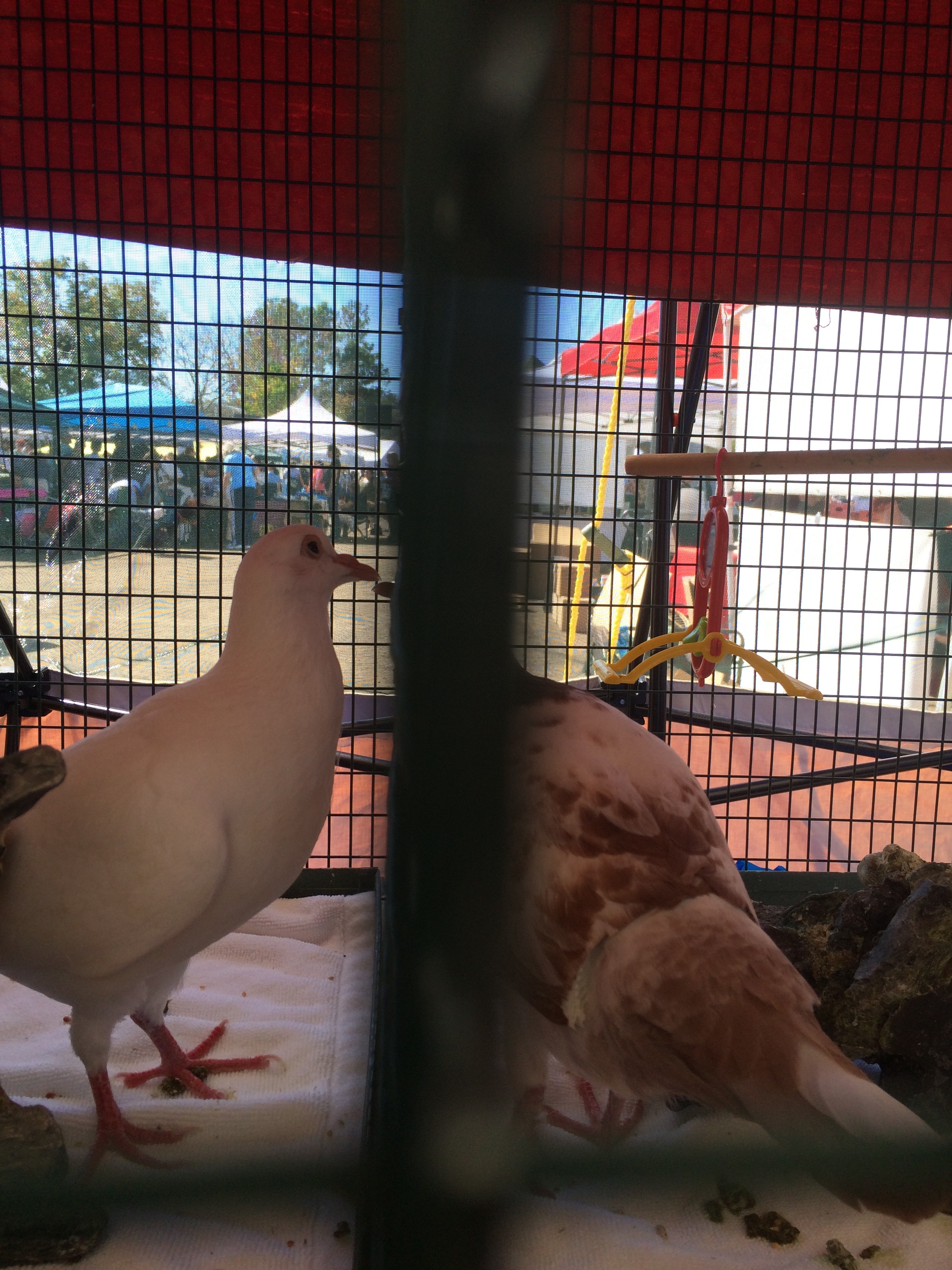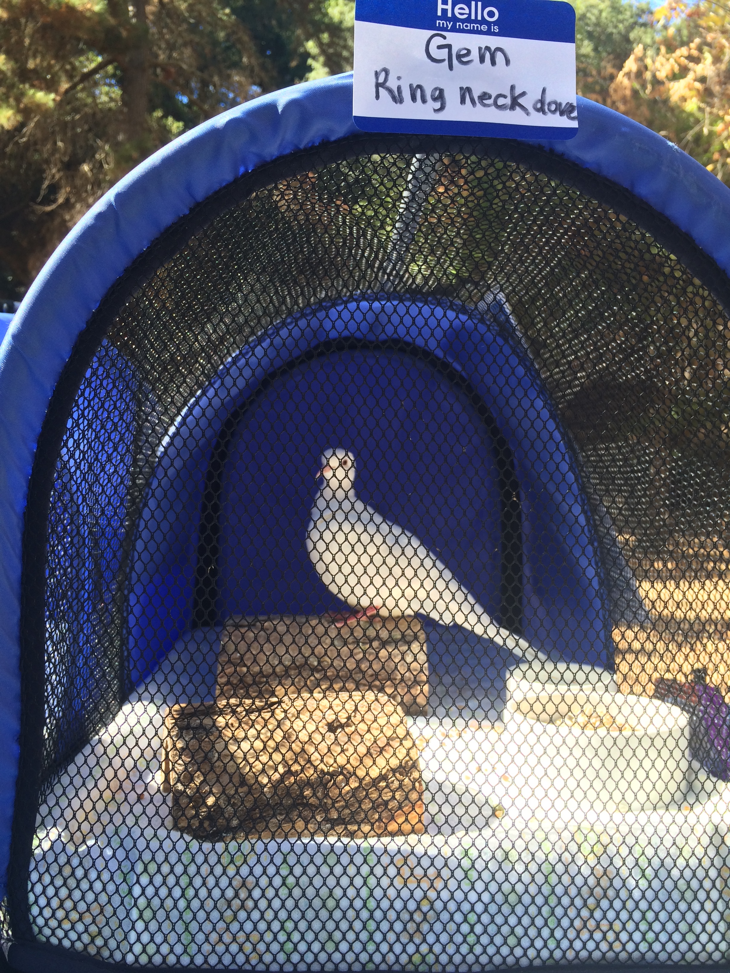 We were all so relieved that this bird was no longer in danger of being prey to some predator. When I informed my husband that someone would be coming on Thursday to pick up the bird he replied, What if we want to keep it? Something I had been secretly thinking about as I felt some type of connection with this bird that had found our backyard as a safe refuge from whatever had happened prior to it coming to us… I started looking for a larger bird cage as this small one did not seem large enough and luckily I found an ad on Craigslist for a bird cage and a bonus, they would deliver. The next day they delivered the bird cage and I informed Janice that we would like to try fostering the bird to see how it would be having a pet pigeon. We now enjoy providing a safe haven for Holly. (We named her Holly as it was around Halloween that she found us and we are not sure if she is a she or a he but since she is pink, we call her Holly.)