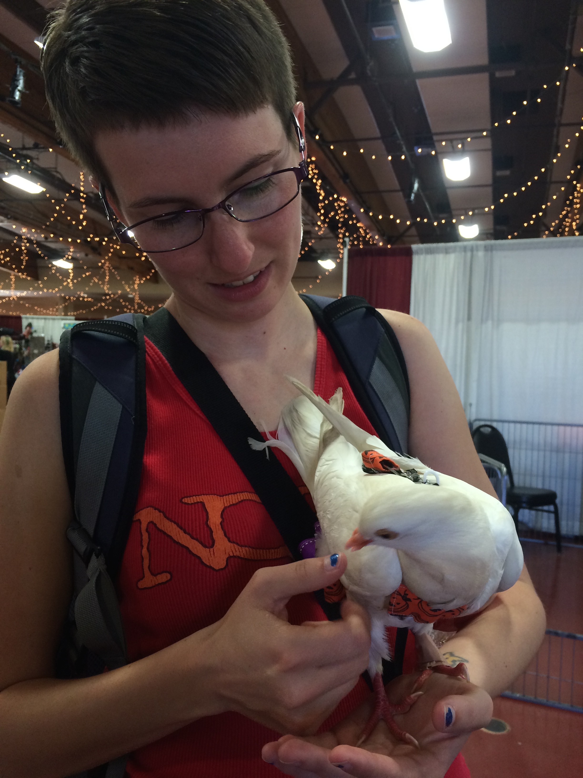 Holly’s story starts in the home that I share with my husband, three cats and two dogs. My name is Candy and I can honestly say that prior to this event, I had no strong emotions for pigeons…