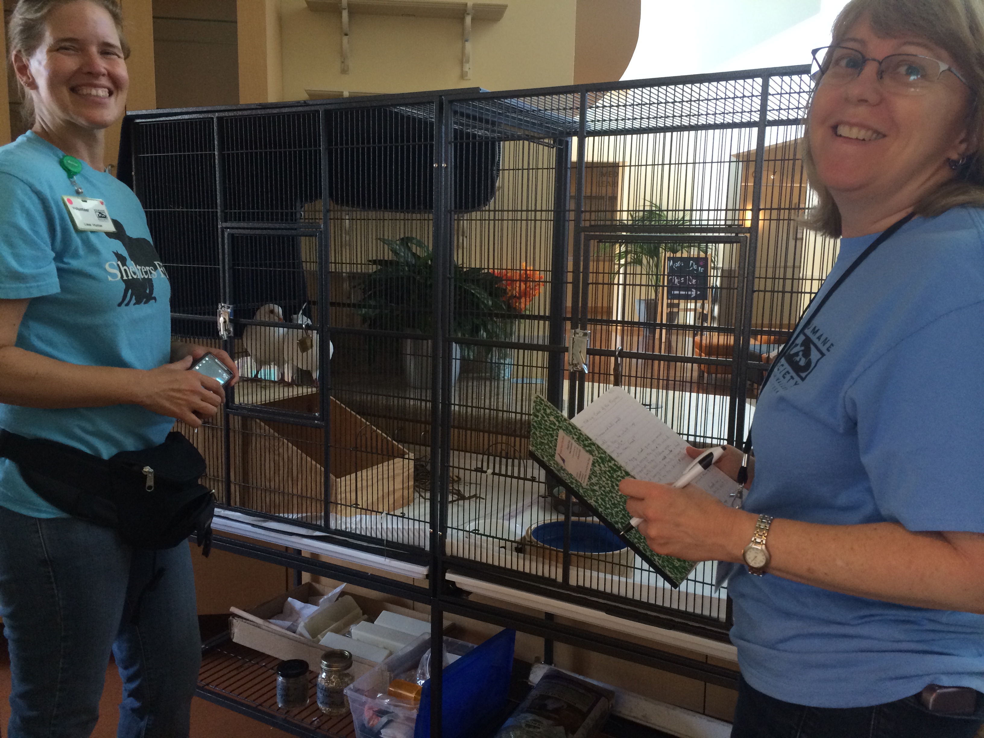 This is Holly enjoying the sunshine in her safe haven, with Charly, the dog that helped save her from predators. Luckily the cage has wheels and we wheel her into the sunshine once the sun comes out and other times she is visible to our family room where our cats and dogs can view her without risk of any harm. We wonder now about how to keep her warm in the winter and cool in the summer, any advice would be appreciated. Thank you so much for your guidance and helpfulness with this pretty bird that chose us to care for… I could tell by the way she would look down from the roof that she needed help.