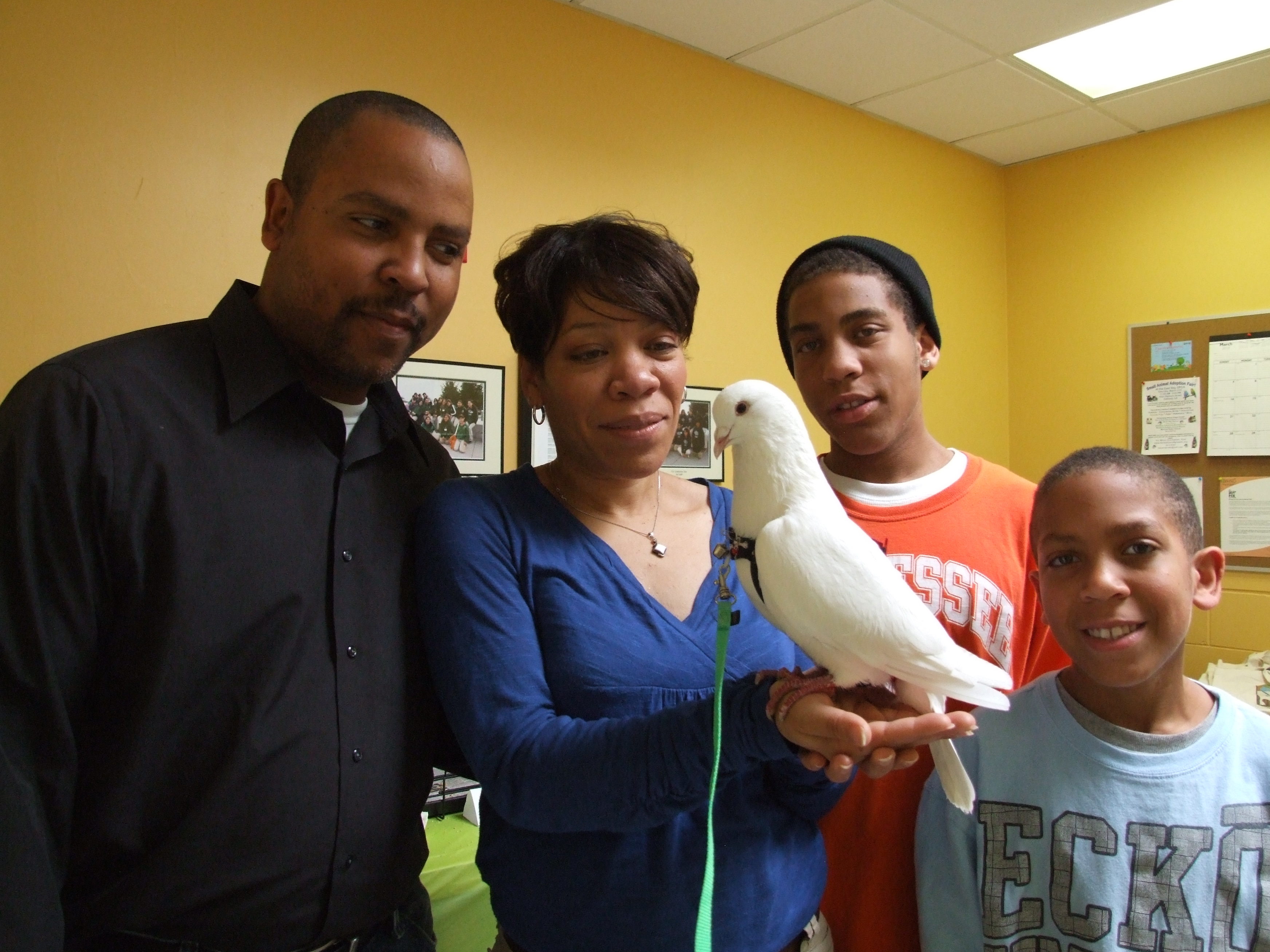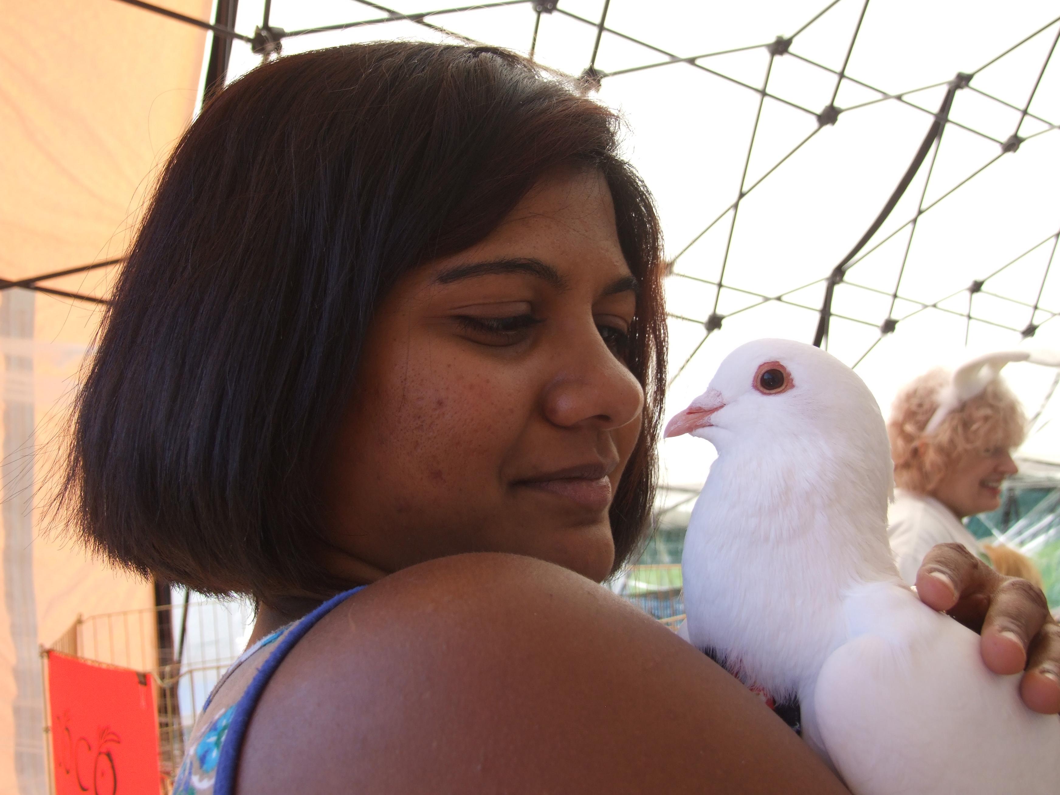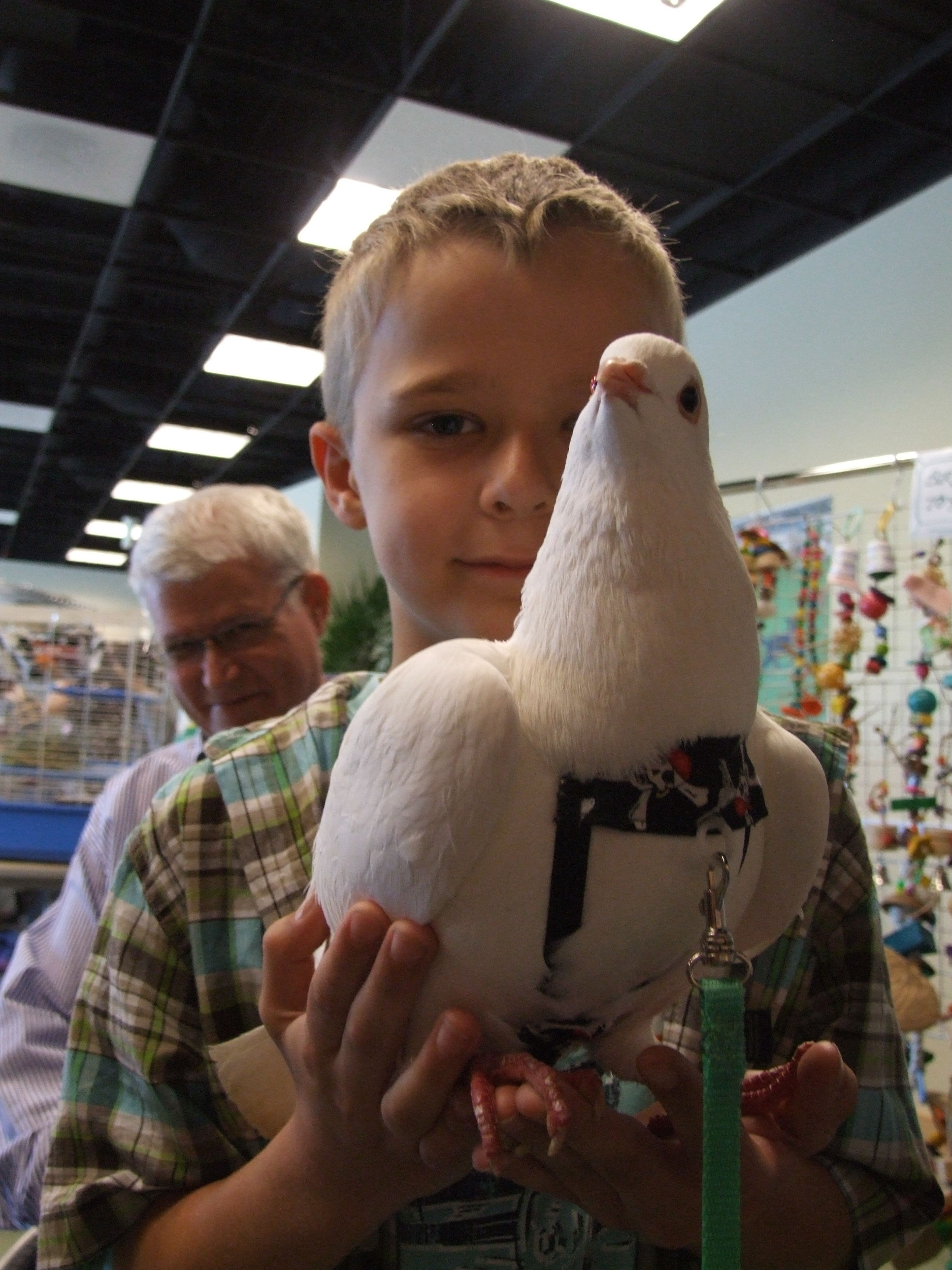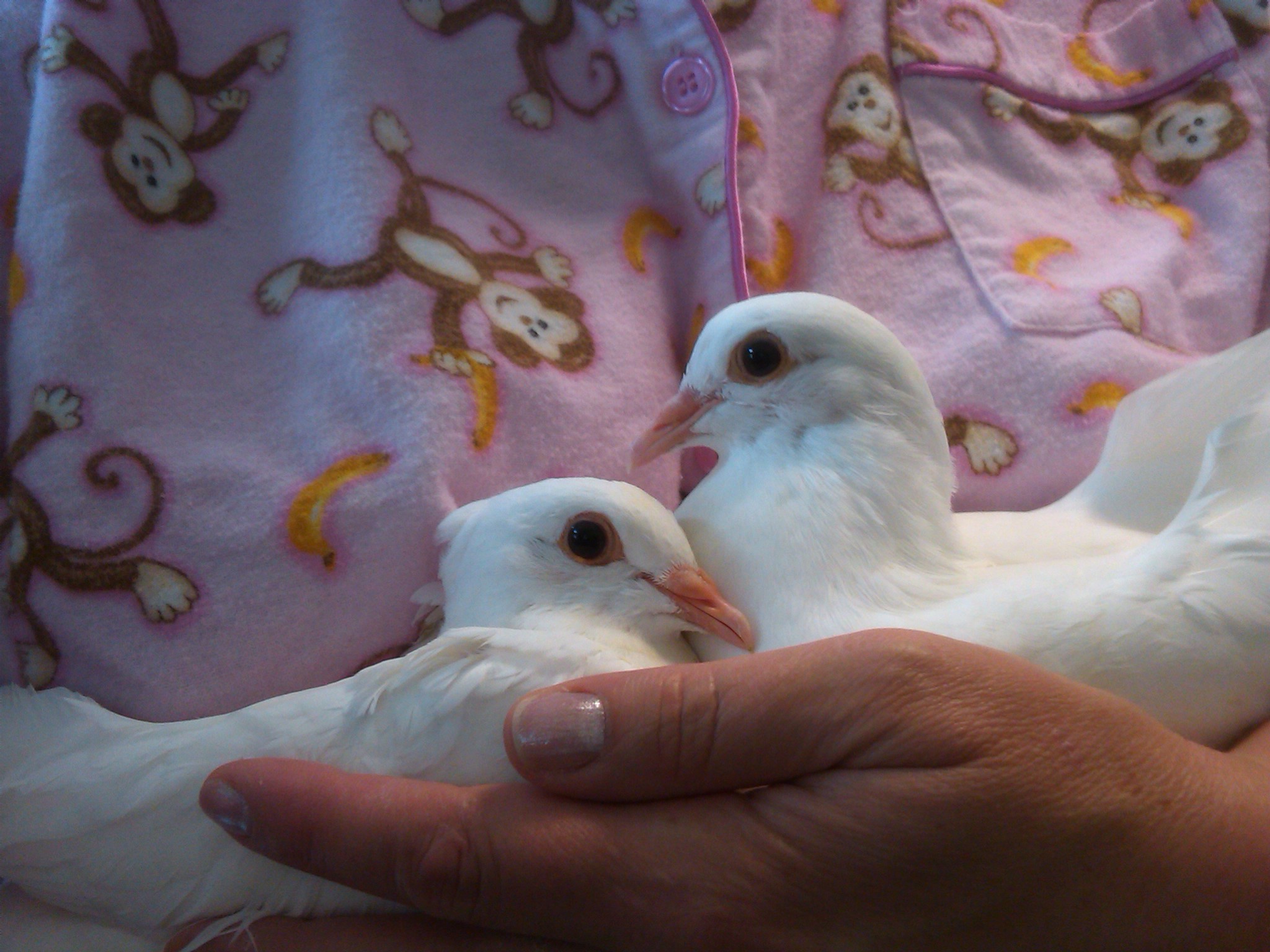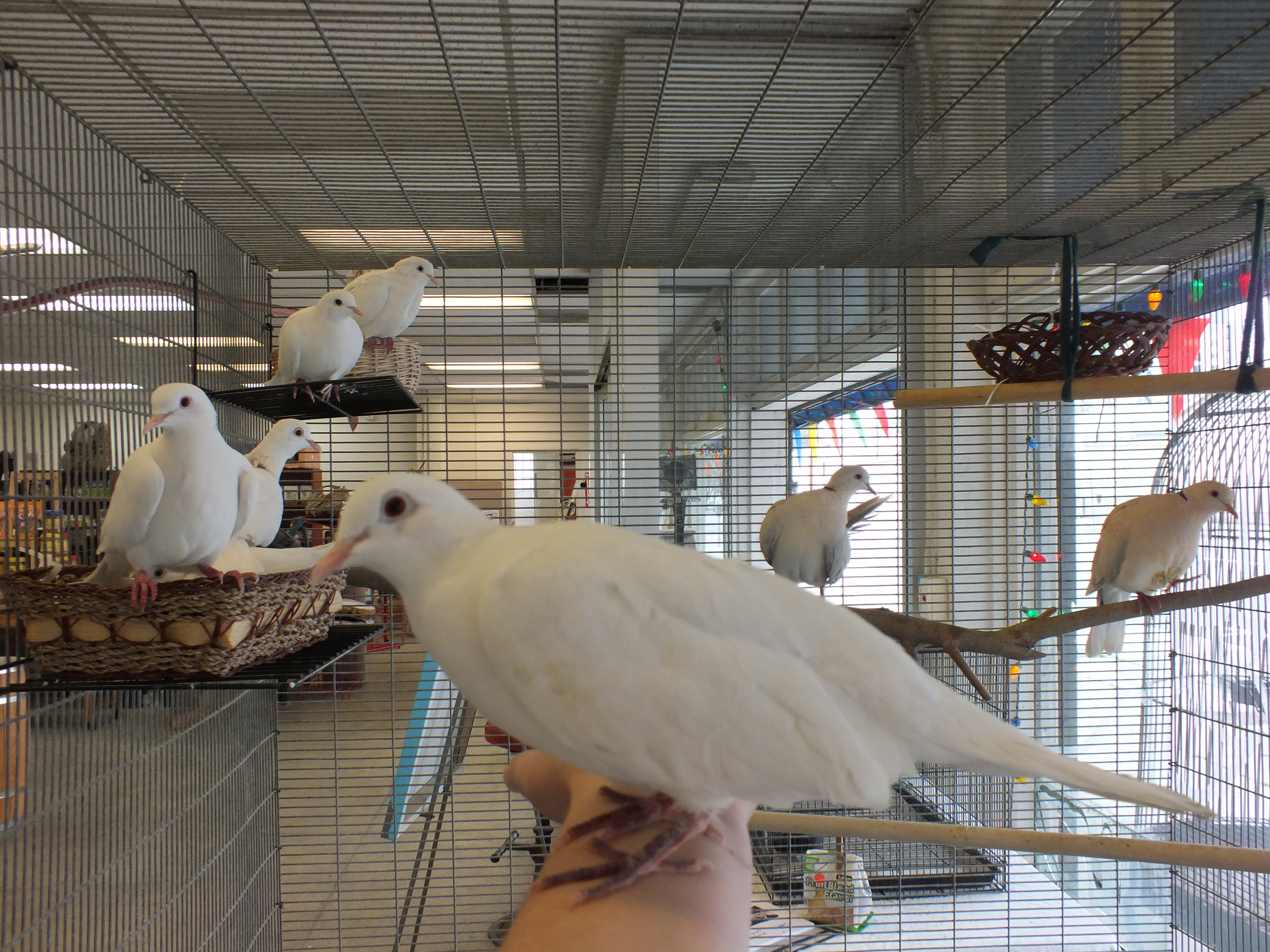 And now I am passionate about MickaCoo and serving the pigeons and doves. I have taken an active role in fundraising, specifically taking charge of auctions and sales, and am currently working on grant proposals. I am, also, interested in organizing the volunteers to better enable MickaCoo to grow and prosper. I have been adopted by 1 homing pigeon, Little Cloud, who is the love of my life. He and I go to schools and events to draw attention to and teach about the plight of domestic pigeons and doves. I provide transportation to the vet, foster birds on a temporary basis, do home visits, attend several events, and whatever is needed. I am currently owned by 2 dogs, 1 cat, and 1 pigeon.