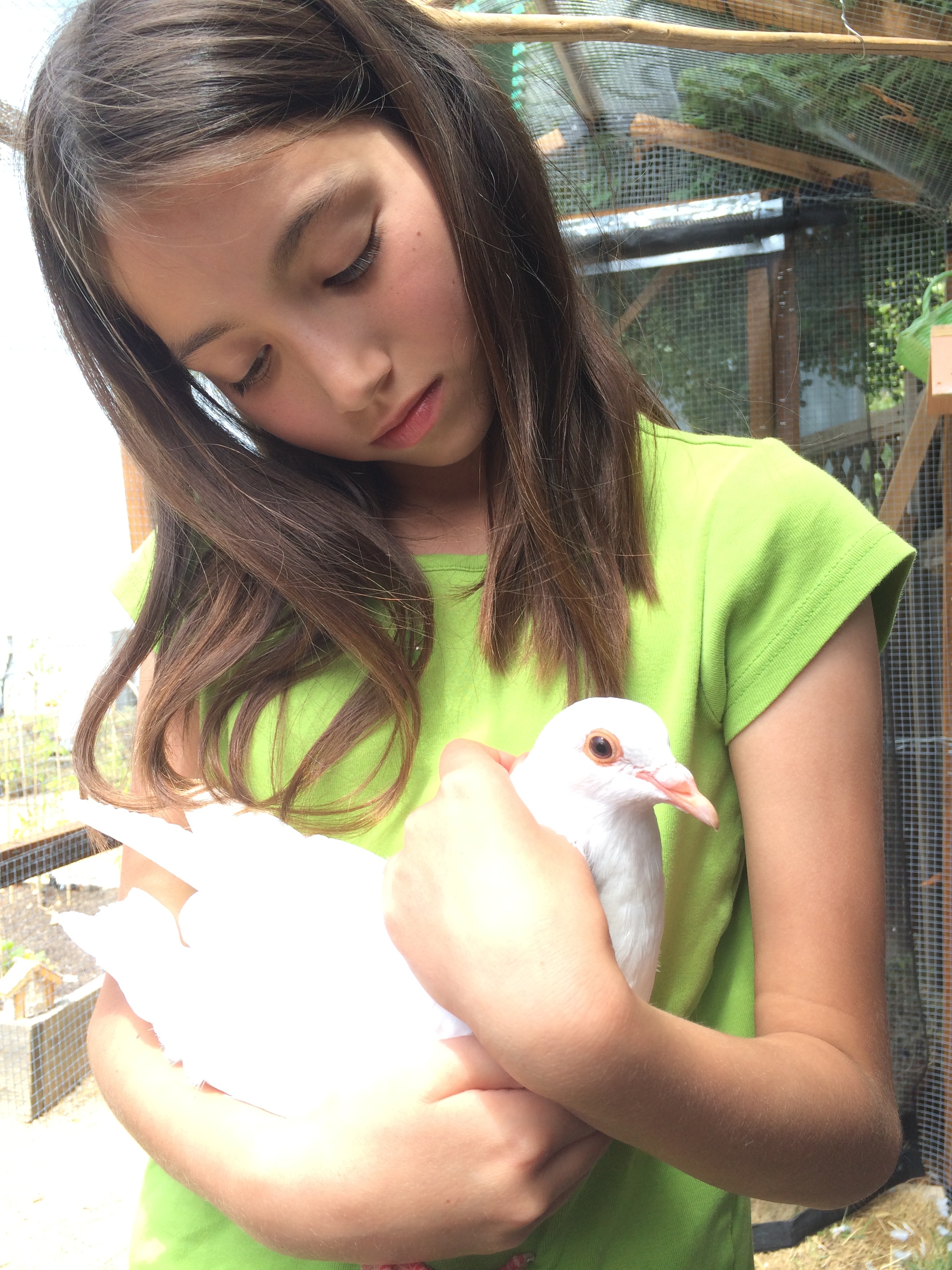 Once out of the nest, they are single for a brief couple of months and then court and marry a mate. Pigeons mate for life and are completely devoted to their mate and young. The thing pigeons care about most is their family and being home with their family. (That’s how pigeons are used to deliver messages or for “dove releases” or racing. They are taken away from home and then they fly their hearts out to try and get back. You can learn more about the cruel sport I call “kidnap racing” and see some rescue stories of racing pigeons here.) If a pigeon can’t get home to his family (or his home isn’t a safe place to return to), he needs a new family. Pigeons are very emotionally intelligent and though it takes time and patience, you can earn their trust and they can become very closely bonded to you.